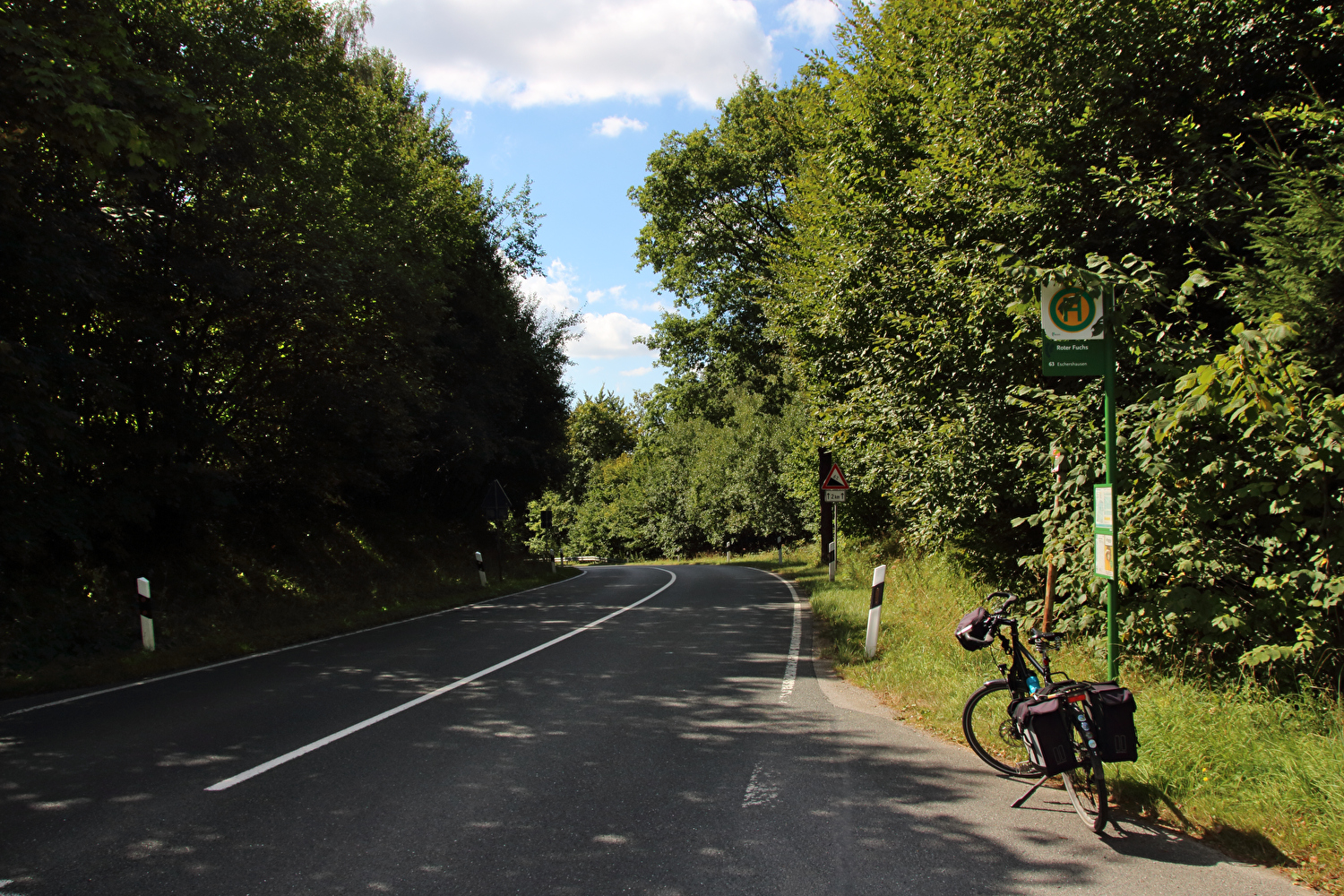 „in klein“: Mit der Überquerung des Roter Fuchs wurde eine lokale Wasserscheide, die dort die Einzugsgebiete von Leine und Lenne (Weser) trennt, überquert. Nahe der Passhöhe entspringt ein (von der Passstraße aus nicht sichtbarer) namenloser Fluss, der über Ruthe, Lenne und Weser in die Nordsee entwässert.