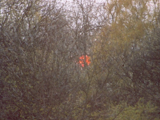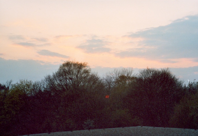 Dies war kein gewöhnlicher Sonnenaufgang, da sich an diesem Tag eine ringförmige Sonnenfinsternis über dem Nordatlantik ereignete, die in Mitteleuropa als partielle Sonnenfinsternis (Hannover: Sonnenaufgang 05:07 MESZ, Bedeckung 46 %; maximale Phase 05:30 MESZ, Bedeckung 83 %; Ende 06:28 MESZ) zu beobachten war. Die Bilder wurden mit einem 45 mm Objektiv ohne zusätzliche Filter aufgenommen. Mit einem so kleinen Objektiv ist die partielle Bedeckung der Sonnenscheibe praktisch nicht fassbar. Besonders ärgerlich war aber eine kompakte Wolkenbank im Osten, die bis ca. 06:00 MESZ den Blick auf die teilverfinsterte Sonne und vor allem den "angebissenen" Sonnenaufgang (Aufgang der teilverfinsterten Sonne) versperrte. Mehr Informationen und eine Nahaufnahme der teilverfinsterten Sonne gibt es unter: http://www.sternwarte-hannover.de/aktuelles/2003/05/fazit.html | ||||