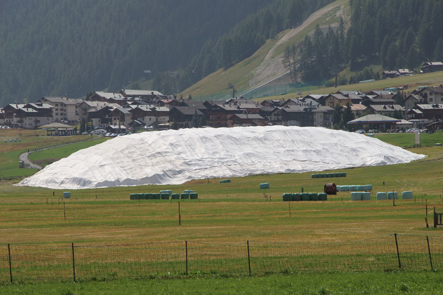 In Livigno wird auf dem Talboden nahe dem Fluss Spöl „der Schnee von gestern“ gelagert. Im Zuge dieses sogenannten “snowfarming” werden ca. 45000 m³ Schnee im Winter auf dem Talboden zu einem Haufen zusammen geschoben und anschließend mit einer Schicht Sägespäne als Wärmedämmung und abschließend mit der sichtbaren Plane, die den Schnee und die Sägespäne vor Sonne, Wind und Regen schützt, überdeckt. Genutzt wird der Großteil des Schnees, um die Skilanglaufsaison früher im Jahr zu eröffnen. Ca. 3000 m³ Schnee werden jedoch für eine mindestens fragwürdige eintägige Skilanglaufveranstaltung im Spätsommer entnommen. Eine Nutzung des Schnees etwa zur Bereitstellung von Kühlleistung im Sommer ist hingegen nicht dokumentiert.