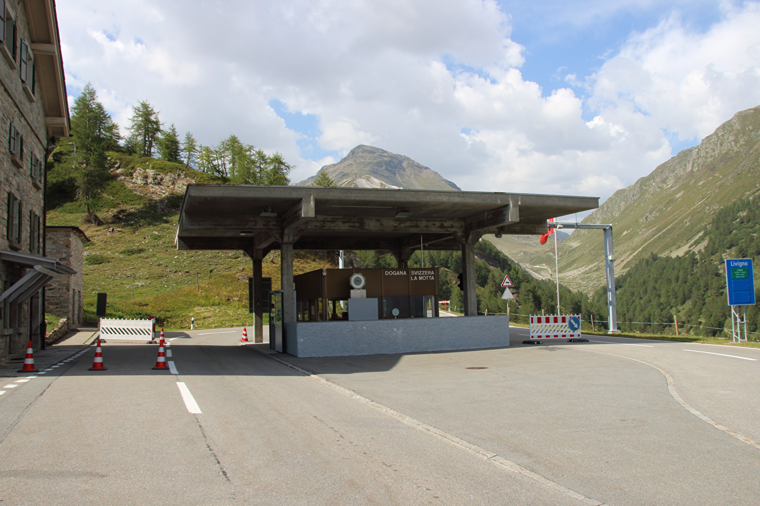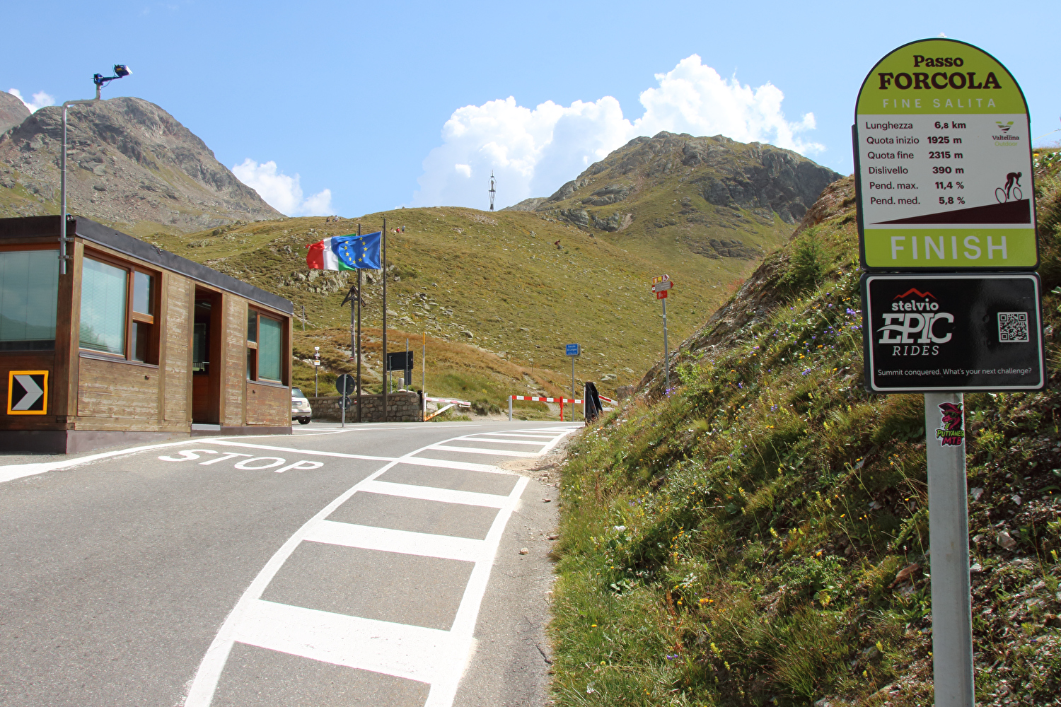 Die Fahrt über den Passo Forcola di Livigno ist die einzige Möglichkeit, auf einer Straße von Norden aus Italien kommend nach Süden in die Schweiz zu gelangen. Auf allen anderen Straßen, die die Staatsgrenze zwischen Italien und der Schweiz queren, erfolgt die Fahrt von Norden aus der Schweiz kommend nach Süden nach Italien. Die Staatsgrenze ist auf der Passhöhe extrem unauffällig. Auf der italienischen Seite sind zwar eine italienische Flagge und eine EU-Flagge gehisst, aber auf der Schweizer Seite findet sich nichts. Eine Schweizer Flagge weht erst an der Schweizer Zollstation beim unteren Ende der Südrampe des Passo Forcola di Livigno. Auf der Passhöhe ist der einzige Hinweis auf die Schweiz ein Schweizer Mountainbike-Wegweiser. Über den Passo Forcola di Livigno verläuft die Wasserscheide zwischen Donau (Spöl → Inn → Donau → Schwarzes Meer) und Po (Torrente Poschiavino → Adda → Po → Adria, Mittelmeer).