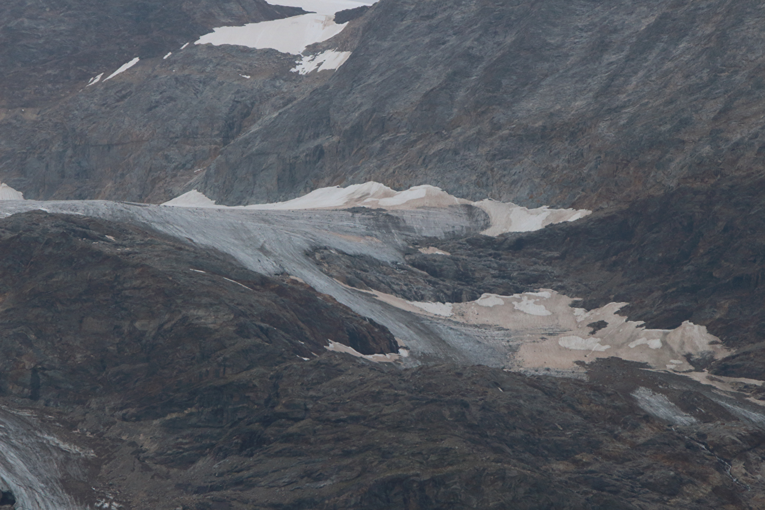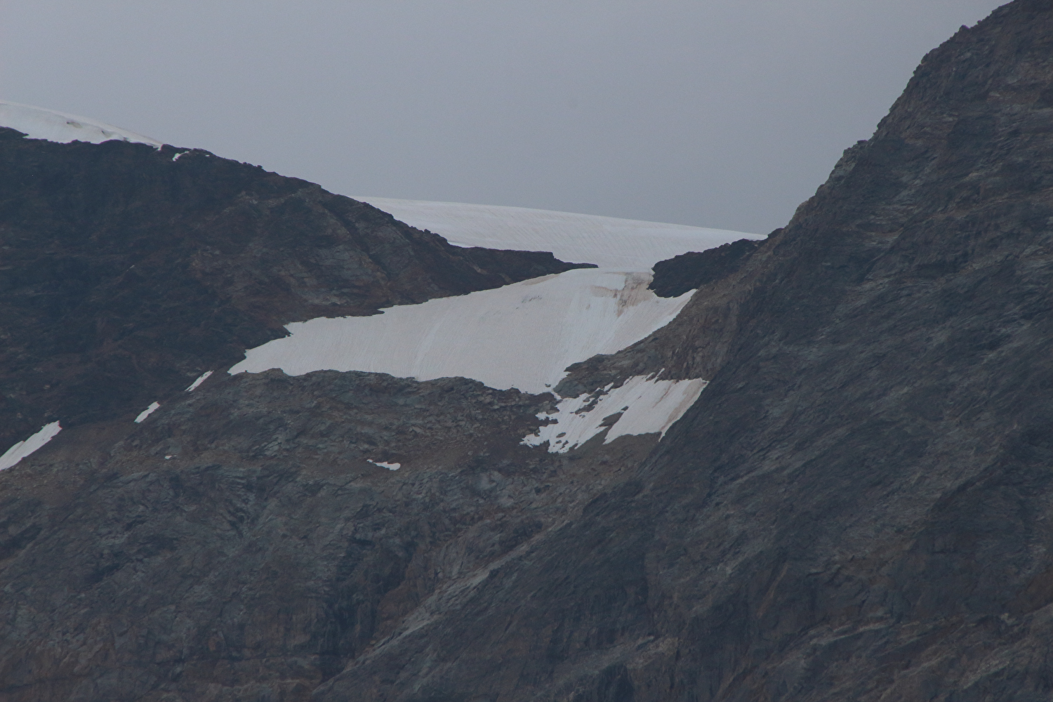 Die Abfahrt begann oberhalb der montanen Baumgrenze. Mit Bernina Suot wurde die montane Waldgrenze erreicht. In der Abfahrt behielten die Wolken am Himmel die Oberhand, wodurch sich im Rahmen dieser Tour eine für die Tageszeit und die Lage oberhalb der montanen Waldgrenze ungewohnt dunkle Lichtstimmung ergab.