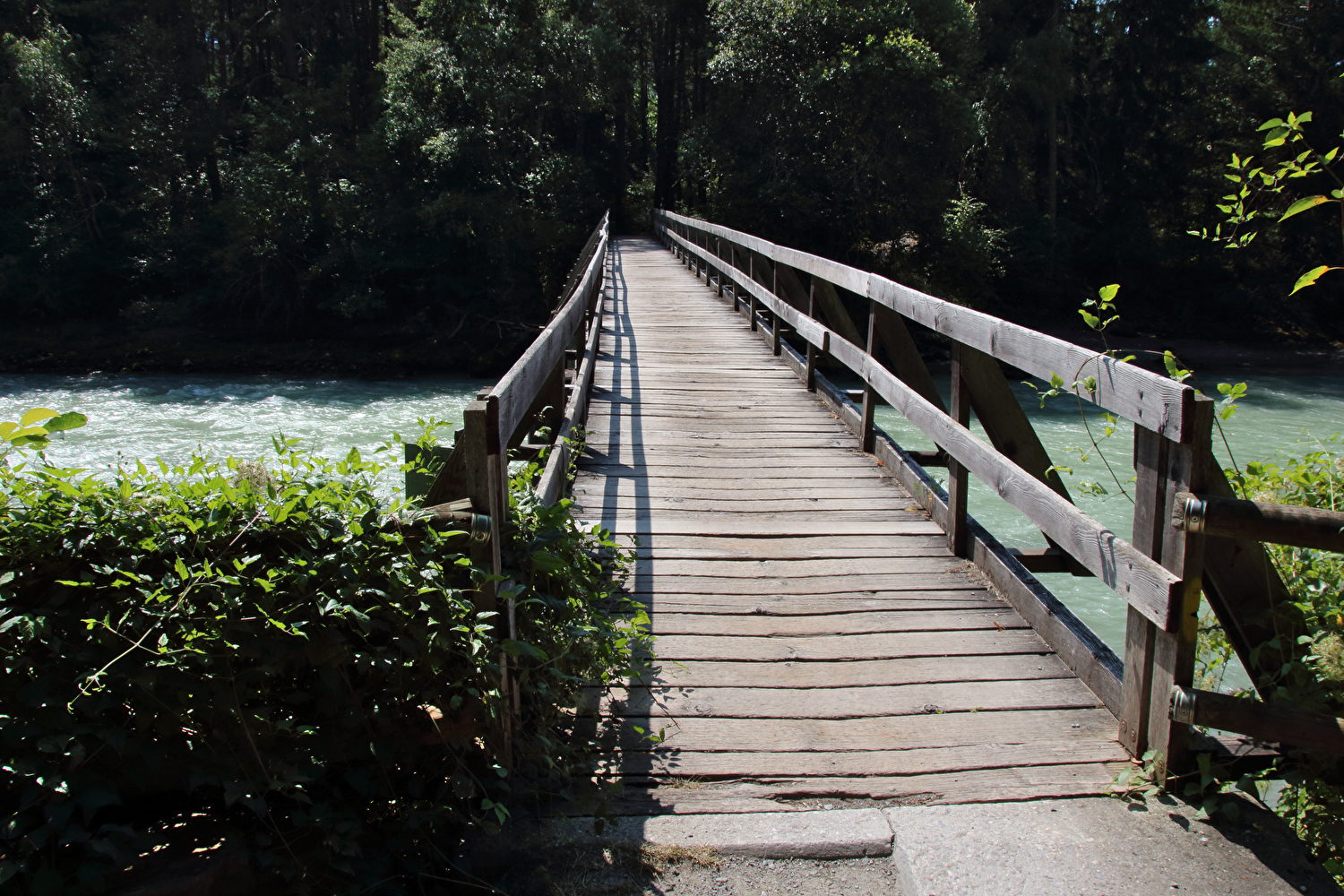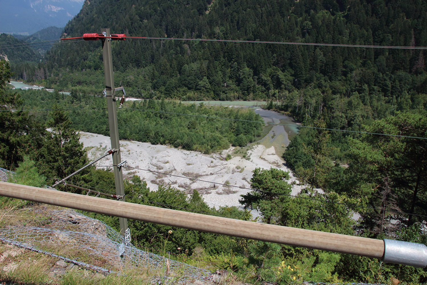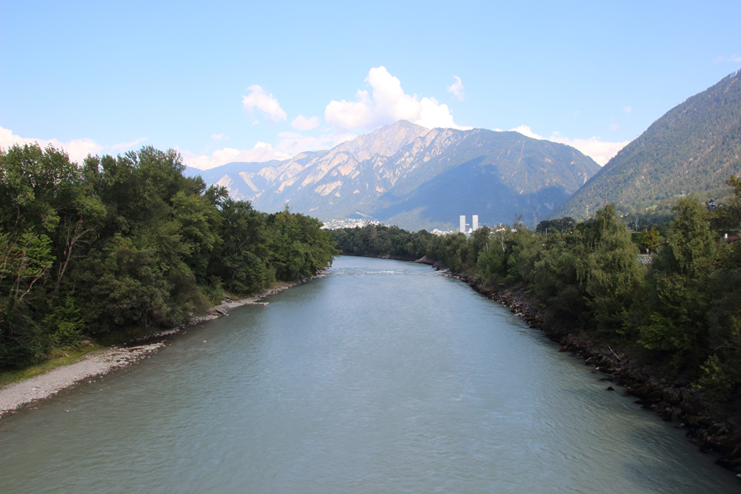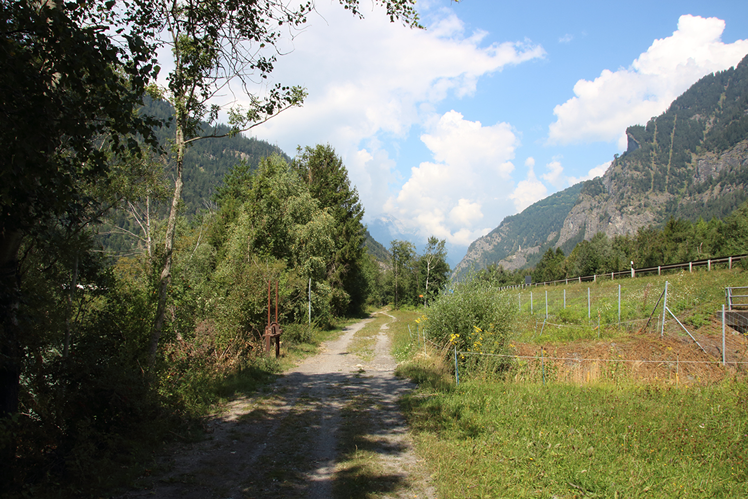 Bei Sils im Domleschg endete die Radwegbeschilderung am Hinterrhein. Die mitgeführte Karte (Landeskarte der Schweiz 1:100000), die im Hochgebirge gut funktioniert, half hier auch nicht weiter, da darin keine Schweizer Velorouten oder sonstige Radwege ausgewiesen sind. Da so weit unten auch kein nennenswerter Fahrradverkehr herrschte, der auf den Verlauf der Veloroute 6 hätte hinweisen können, fiel die Wahl auf einen Weg entlang des Hinterrhein flussabwärts, da diese Fahrtrichtung notwendigerweise ins Alpenrheintal führen würde. Dieser Weg ist größtenteils eine Schotterpiste und führt teilweise hochromantisch zwischen Hinterrhein und Autobahn (in Sicht-, Hör- und Riechweite). Dafür fuhren auf dem Weg keine Kraftfahrzeuge. Der Weg führt teilweise durch Wald, was gerade in der Mittagszeit eine Fahrt in der prallen Sonne ersparte. Außerdem führt der Weg über die unterste Albulabrücke, also die letzte Brücke über die Albula vor deren Mündung in den Hinterrhein, und wenig später auch an die Mündung der Albula in den Hinterrhein. Entlang des Weges fanden sich nur Wander- und Mountainbike-Wegweiser, womit klar wurde, dass auf diesem Weg nicht die Veloroute 6 verlief. Bei Rothenbrunnen standen an der Dorfstrasse-Brücke wieder Fahrradwegweiser und der Hinweis auf eine längerfristige Wegsperrung bei Ravetg, weshalb die Veloroute 6 über die Dorfstrasse-Brücke auf die Westseite des Hinterrhein umgeleitet wird. Da das Thema Mittagessen aber deutlich in der Vordergrund rückte, wurde erst mal auf die Straße nach Rhäzüns aufgefahren, wo ein Restaurant gerade noch vor Küchenschluss um 14:00 Uhr erreicht wurde. Nach dem Mittagessen wurde zunächst auf der Straße bis Bonaduz gefahren. Dort fand sich zwar eine Auffahrt auf die Veloroute 2 „Rhein-Route“, die aber sichtbar durch sehr welliges Gelände führt, während die Straße nach Reichenau deutlich flacher verläuft. Daher wurde zunächst auf der Straße weiter gefahren und erst kurz vor Reichenau auf die asphaltierte Veloroute 2 gewechselt, die dann bis Chur nicht mehr verlassen wurde.
