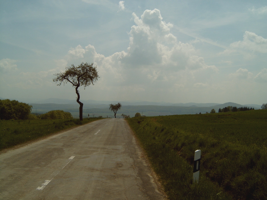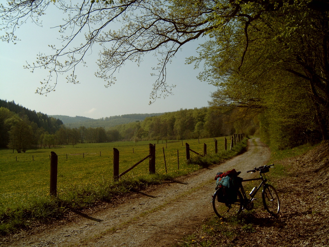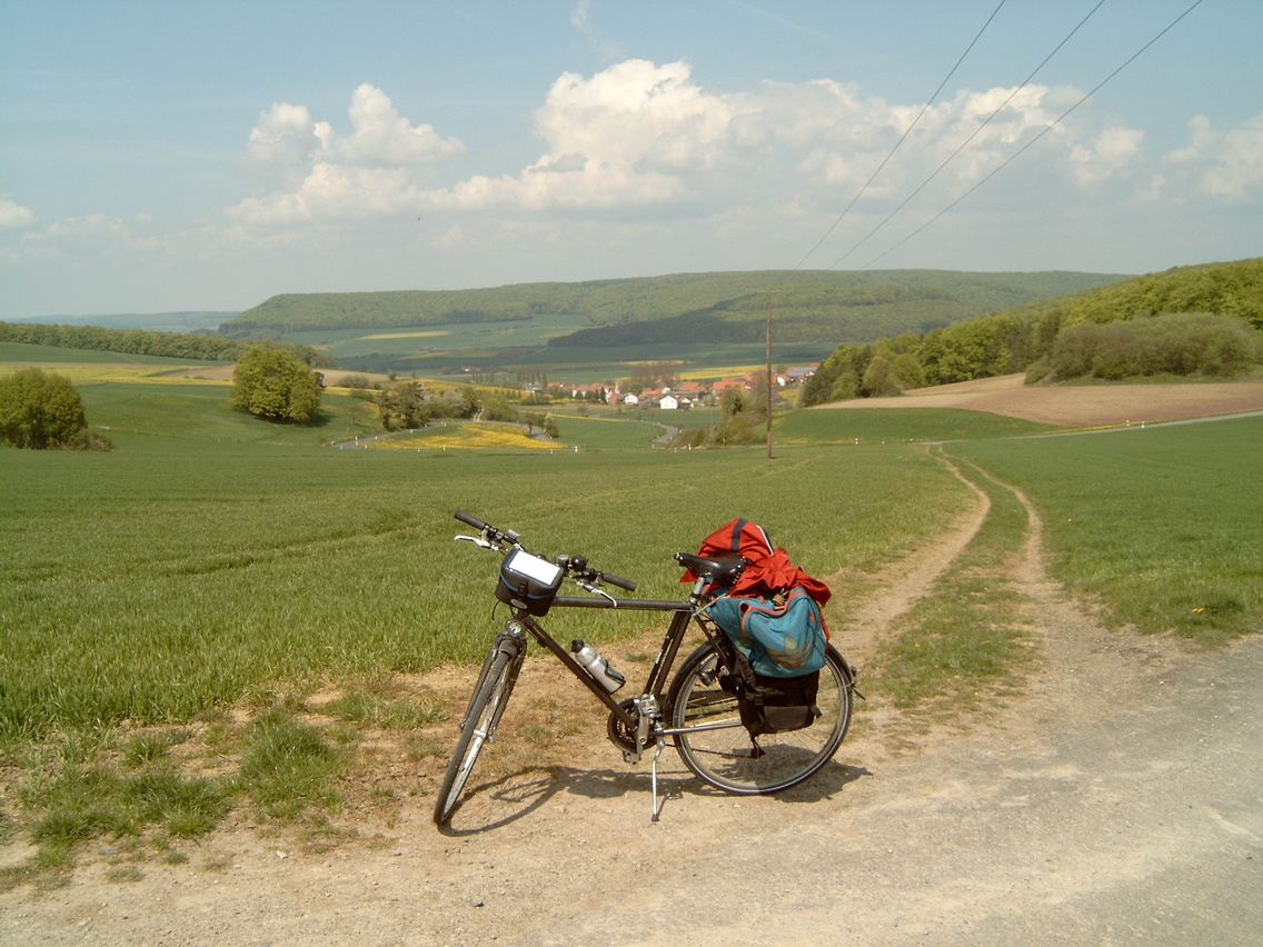 Beschreibung | Diese Etappe war weniger wellig als die am Vortag. Dafür waren die Anstiege länger, was sich insgesamt besser treten ließ. In Ronshausen erfolgte der Wechsel auf Fahrradwege oder zumindest das, was man dort dafür hält. Zunächst wechselte der Belag von Asphalt auf Schotter. Dann aber folgte im Verlauf des Radweges ein mit Grobschotter befestigter Feldweg. Da war mit 37er Reifen Schleichfahrt angesagt. Im Seulingswald wechselte der Belag zwar wieder auf Schotter, dafür ging es nun aber stramm bergauf. Da auf Schotter der Mikroschlupf der Reifen größer ist als auf Asphalt, wirkt so ein Belag wie einige Steigungsprozente extra. Ab Friedewald wurde für den Rest der Etappe auf Straßen gefahren. Von Mansbach bis Tann (Rhön) verlief die Route entlang der hessisch-thüringischen Landesgrenze, so dass die Fahrt ohne Vorwarnung immer wieder streckenweise durch die Zone führte. Ab Wüstensachsen nahm die Steigung deutlich zu und in den Wäldern tauchten vermehrt Fichten auf, womit endlich Bergfahrgefühl aufkam. Das Dach der Tour zum Ende der Etappe war nicht gerade optimal geplant, aber egal. Wat mutt, dat mutt! Die Wasserkuppe liegt deutlich unterhalb der Baumgrenze und würde ohne menschliches Zutun wieder verwalden. Ausgerechnet für diesen dämlichen Flugbetrieb wird der Gipfelbereich waldfrei gehalten, die sicherlich auch nicht bessere militärische Nutzung des Gipfelbereichs wurde zwischenzeitlich komplett eingestellt. Auf dem Gipfel fand sich weder ein Gipfelstein noch ein Gipfelschild, was für den höchsten Berg Hessens doch etwas armselig war. Im Hotel in Gersfeld gab es, obwohl gebucht, keine Glotze im Zimmer. Da war es gut, das Hümmelchen im Gepäck zu haben, um den Abend rumzukriegen. Diesen "Luxus" leiste ich mir bei Mehrtagestouren, zumal das Instrument samt Verpackung auch nicht so viel wiegt und das zusätzlich benötigte Packvolumen kein Problem darstellt. |