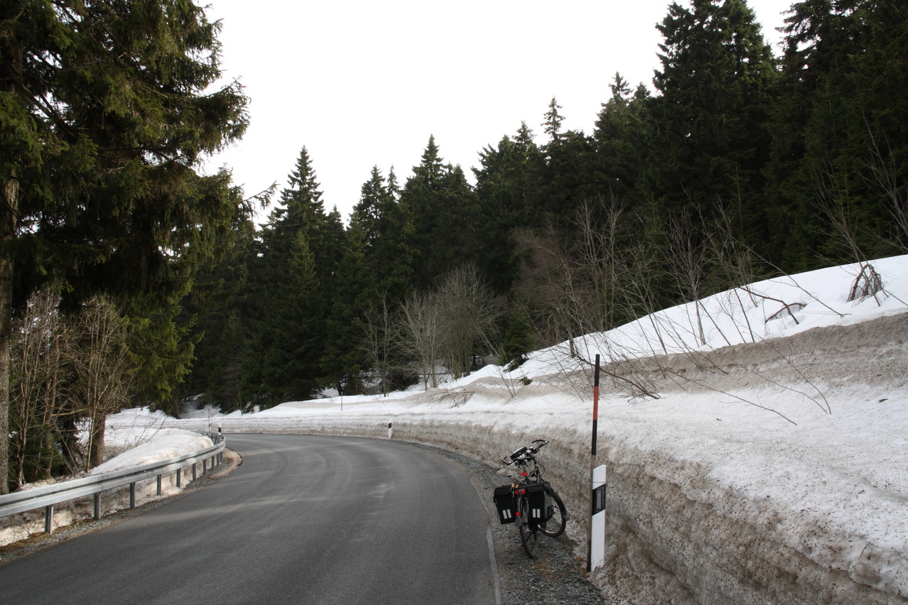 Beschreibung | Endlich, die erste Bergtour der Saison 2010 konnte starten! In Oker angekommen wurde wieder mal deutlich, dass dieser Bahnhof zu den Juwelen deutscher Bahnhöfe gehört. Infrastruktur für Reisende mit Fahrrad gibt es nicht. Seine wahren Qualitäten offenbart der Bahnhof Oker in der zu durchquerenden Gleisunterführung. Ein kräftiger Duft von abgestandenem Urin umschmeichelt die Nase. Abgerundet wird das Bild durch die großflächigen Verminungen mit Glasscherben unterschiedlicher Größe. Wer sein Fahrrad liebt, der Am Ortsausgang Oker war die notwendige "Betriebstemperatur" erreicht und die Umgebungstemperatur erlaubte zunächst die Weiterfahrt in kurzen Klamotten. Das wurde ab der Okertalsperre durch den unangenehmen Südostwind, der die kalte Luft aus dem zumindest noch teilweise schneebedeckten Hochharz mitbrachte, aber grenzwertig und in Altenau wurde die erste Schicht drüber gezogen. Zu allem Überfluss ließ die Kraft der Sonne im Tagesverlauf zunehmend nach, da hohe Wolken diese zunehmend abschatteten. Bergauf fiel das noch nicht so sehr auf, aber die Pause in Torfhaus fiel recht kurz aus und die Abfahrt erfolgte in langen Klamotten mit Thermounterhemd und langer Unterhose drunter und Regenjacke als Windschutz drüber. Alles in allem fordert so eine Tour bei spätwinterlichen Verhältnissen doch mehr als bei sommerlichen Temperaturen, aber nach diesem viel zu langen widerlich weißen Winter gab es zu dieser Bergtour keine Alternative. |