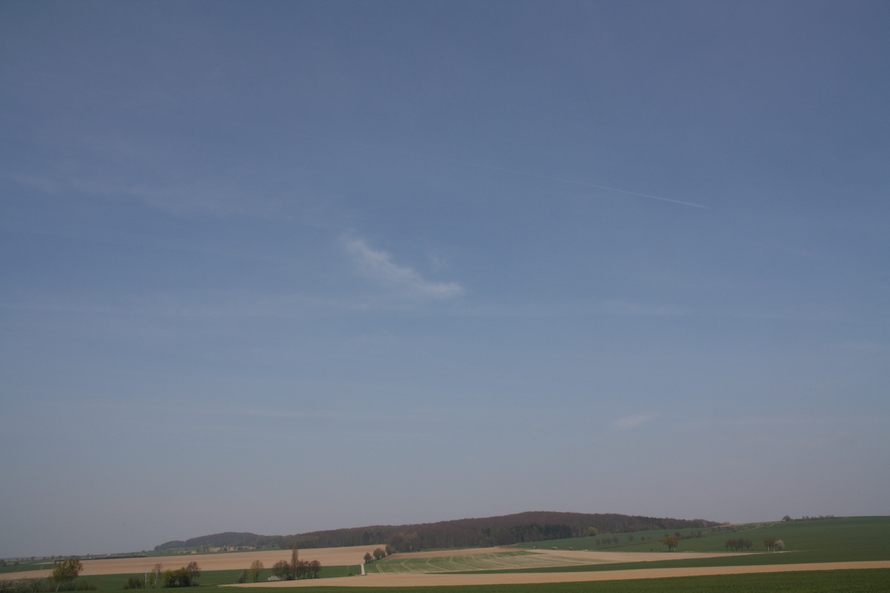 Beschreibung | Anders als am letzten Wochenende waren die Touristenbomber wieder am Himmel und dem entsprechend milchig sah der auch aus. Während der Pause bei Degersen, wo auch die Fotos von den Bombern entstanden, flogen innerhalb von zehn Minuten mehr als fünf dieser Dreckschleudern im Sichtbereich. Ansonsten war dieses Wochenende endlich ein richtiges Fahrradwochenende. Da es an diesem Tag nicht ganz so warm war, wurde eine Runde über den Deister angesetzt und die Harzrunde für den nächsten Tag geplant. Selbst auf dem Deisterkamm hielt endlich der Frühling Einzug, Laubbäume und Lerchen setzten erstes zartes Grün an. Oben angekommen forderte der Magen sein Recht ein, und an die Portion Bratkartoffeln (nicht zu üppig & nicht zu teuer) am Annaturm schloss sich bei einem Hefeweizen "ohne" — "Sprit im Tank" ist keine so gute Idee bei einer Radtour — noch eine zwanglose Plauderei mit einem Mountainbiker an, was die Reisezeit in Verbindung mit den Fotopausen zuvor insgesamt etwas in die Länge zog. |