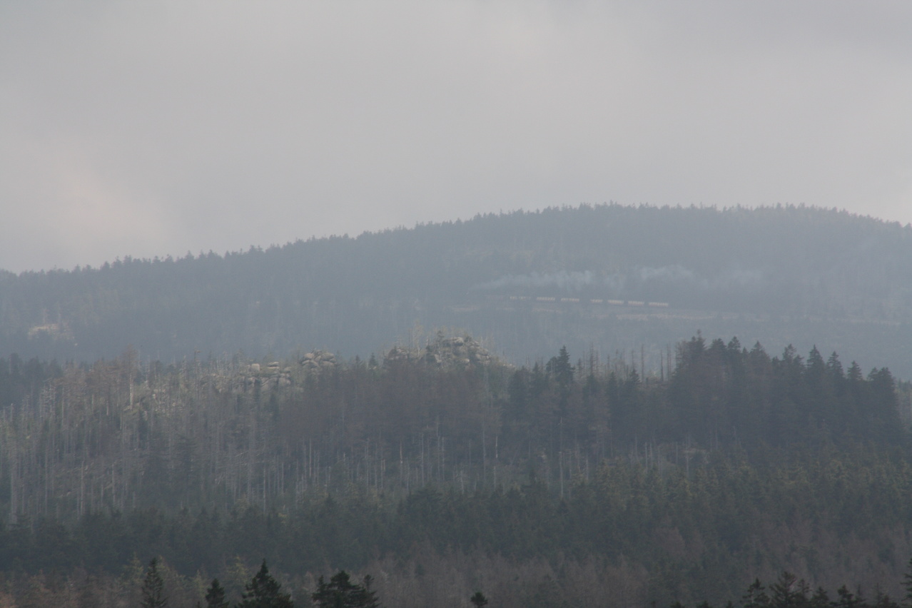 der Quitschenberg mit seinen Klippen, im Hintergrund stinkt ein dampfbespannter Zug auf den Brocken ![]() 300 dpi JPEG |