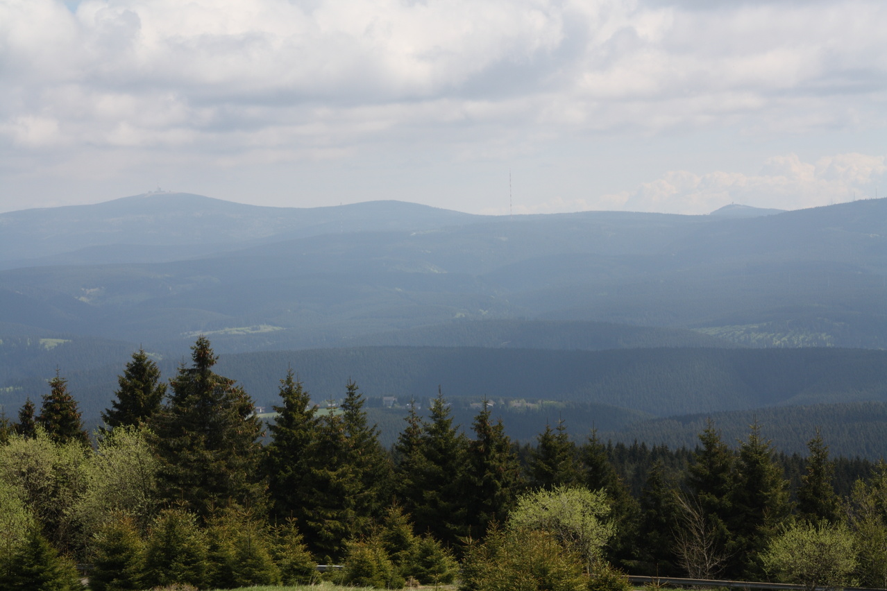 von links: Brocken, Königsberg, Sendemast Torfhaus, Wurmberg; im Vordergrund: Schulenberg im Oberharz ![]() 300 dpi JPEG |