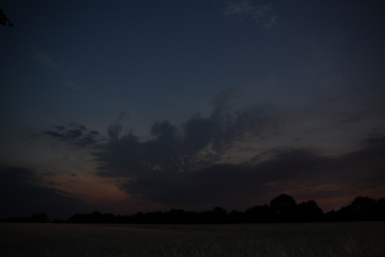 Beschreibung | Schon das zweite Wochenende in Folge verhinderte die Hitze Tagesradtouren. Also wurde mit dem letzten Zug nach Bennemühlen verlegt, bevor überhaupt nicht gefahren wurde. Dort angekommen war es immer noch drückend heiß und selbst außerhalb der Orte und mit vorrückender Nacht erreichten die Temperaturen kein angenehmes Niveau. Bereits westlich von Bennemühlen ist beim ersten freien Blick nach Süden die Lichtglocke über Hannover zu sehen. Mit weiterer Annäherung an die Stadt macht sich dieser rötliche Schein immer breiter. Die Tatsache, dass nur noch die hellsten Sterne zu sehen sind, ist noch das geringste Problem dieser großenteils völlig unnötigen Lichtverschmutzung. Die Tour selbst stellte abgesehen von den zu hohen Temperaturen keine besonderen Ansprüche. Nachfolgend noch einige Tipps für die Betrachtung der "großen" Bilder, die auch für die Bearbeitung von Dämmerungs- und Nachtfotos funktionieren: