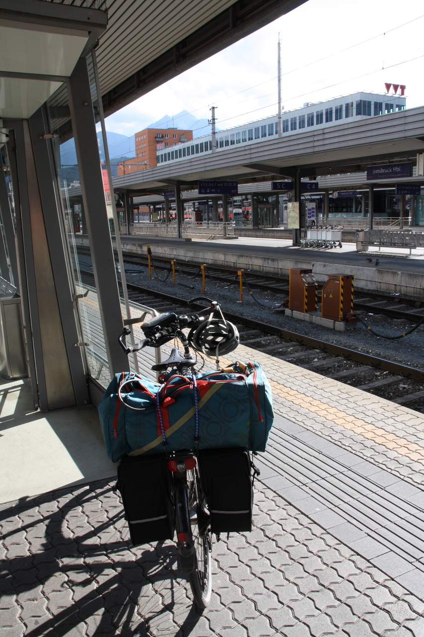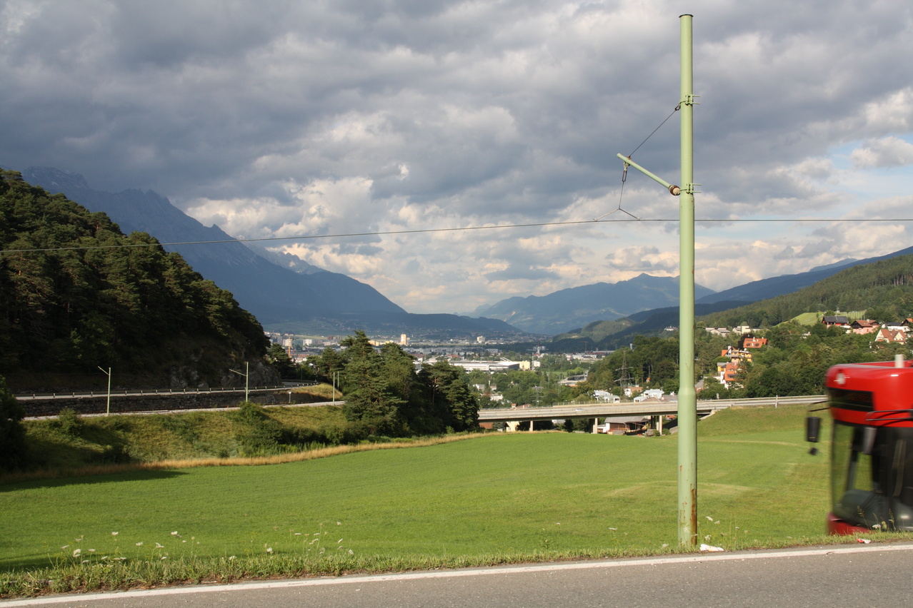 Beschreibung | Endlich! Nach einem viel zu langen Jahr im Mittelgebirge und im Flachland standen wieder richtige Berge auf dem Tourplan ☺ In Hannover ging es in einem angenehm schwach besetzten IC mit gut zehn Minuten Verspätung los. Erstaunlicherweise wurden diese zehn Minuten aber bis Augsburg wieder aufgeholt. Südlich von München tauchten das erste Mal die Alpen am Horizont auf. Weniger schön war, dass in dem IC der Wagen mit dem Bordrestaurant fehlte. Somit wurde der mit ca. 1½ Stunden recht lange Aufenthalt in Rosenheim genutzt, um eine warme Mahlzeit in Bahnhofsnähe einzunehmen. Weiter nach Innsbruck ging es in einem voll besetzten, aber noch nicht überfüllten EC. Die Strecke von Strass nach Innsbruck war nicht unbekannt, sie war in entgegengesetzter Richtung Teil der 3. Etappe der Alpentour 2009 gewesen. Und in diesem Bereich sind Radweg und Eisenbahntrasse nicht so weit voneinander entfernt. Von Innsbruck waren noch einige Kilometer zum Quartier zurückzulegen, wobei auch einige Höhenmeter zu überwinden waren. Nach der langen Bahnfahrt war das zum Ausklang des Tages ganz angenehm, zumal der Anstieg von Innsbruck nach Unterberg sehr moderat verläuft und auch die Ausfahrt aus Innsbruck Richtung Unterberg für Großstadtverhältnisse recht unkompliziert ist. |