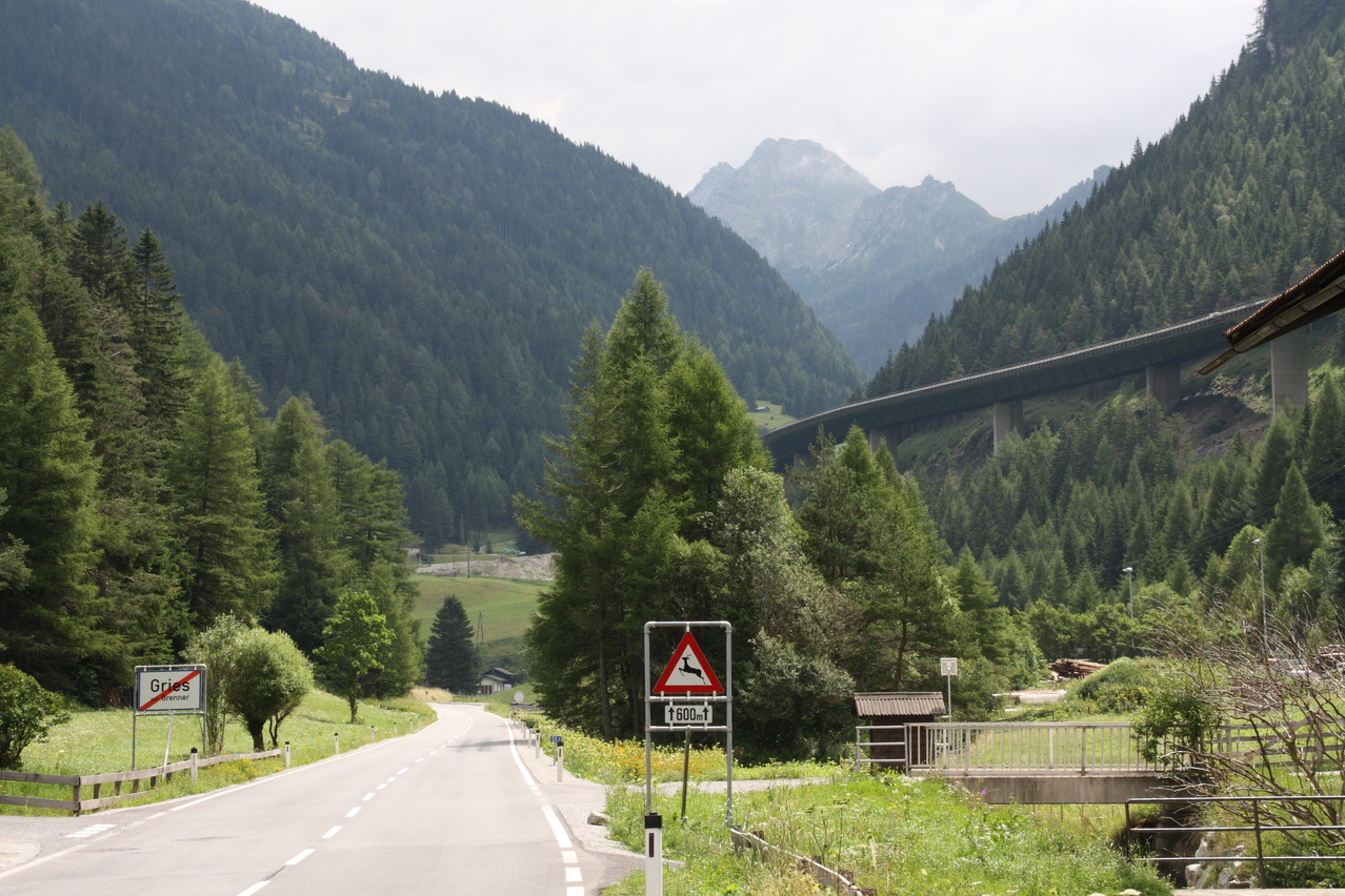 Beschreibung | Die Fahrt über den Brennerpass ist ideal zum Einrollen am Beginn einer Mehrtagestour, denn die Steigungen sind bis auf ein kurzes Stück vor der Passhöhe sehr moderat. Ein zweischneidiges Schwert ist allerdings die Brennerautobahn, in Österreich offiziell "Brenner Autobahn", in Italien offiziell "Autostrada del Brennero" genannt. Zum Einen nimmt sie einen Großteil des Stinkeverkehrs, vor allem auch Schwerlastverkehr, über den Brennerpass auf und sorgt somit für eine geringe Stinkeverkehrbelastung der Passstraße, der Landesstraße B182 in Österreich, die dort auch "Brennerstraße" genannt wird, und der Strada statale (Staatsstraße) 12 in Italien, zum Anderen verschandelt diese Autobahn mit ihren monströsen Betonbrücken die Landschaft in erheblichem Maße. Das anfangs bewölkte Wetter wurde im Tagesverlauf Richtung Italien immer freundlicher, ab der Passhöhe herrschte angenehmes Sommerwetter. Knapp unterhalb der Passhöhe auf italienischer Seite beginnt der neu angelegte Brennerradweg, der streckenweise auf der alten, oberirdischen Trasse der Brennerbahn verläuft. Dieser Radweg wurde kurz vor Gossensaß wieder verlassen, da der Belag von Asphalt auf groben Schotter wechselt. Mit kaum noch spürbarem Gefälle ging es weiter bis hinter Franzensfeste, wo die etwas wirr ausgeführte Abzweigung ins Pustertal nach Mühlbach genommen wurde. Dieses letzte Stück Straße war mit reichlich Stinkeverkehr belastet, was auch mit dem italienischen Feierabendverkehr zusammenhing, der wie auch an den folgenden Werktagen in Italien recht schlagartig um kurz nach 16:00 Uhr einsetzte. Dafür bot sich an einer Stelle von dieser Straße ein allererster Blick auf das, was die nächsten Tage kommen sollte, die Dolomiten. Hinweis zu Ortsbezeichungen in mehreren Sprachen: In der italienischen Provinz Südtirol, amtlich "Autonome Provinz Bozen – Südtirol", sind Italienisch und Deutsch die beiden Amtssprachen. Im Südosten von Südtirol kommt in einigen Gemeinden noch Ladinisch als dritte Amtssprache dazu, wobei von der ladinischen Sprache mehrere Dialekte verwendet werden. In Südtirol werden auf offiziellen Schildern Bezeichnungen von geografischen Objekten, also Ortschaften, Bergen und Gebirgszügen, Tälern, Gewässern, Verkehrswegen und besonderen Bauwerken wie etwa Burgen, in allen am Standort des Schildes verwendeten Amtssprachen angegeben. Auf diesen Seiten werden in eindeutigen Fällen für geografische Objekte, die in Südtirol liegen, die deutschsprachigen Bezeichnungen verwendet. In Zweifelsfällen und für geografische Objekte, die in anderen italienischen Provinzen liegen, werden die italienischsprachigen Bezeichnungen verwendet. Ladinischsprachige Bezeichnungen werden nur benutzt, wenn keine deutsch- oder italienischsprachigen Bezeichnungen verfügbar sind. Unter den Bildern befindet sich jeweils eine Tabelle, die für die zuvor erwähnten geografischen Objekte die Namen in allen Amtssprachen enthält. Inoffizielle Bezeichnungen sind grau und kursiv gesetzt. |