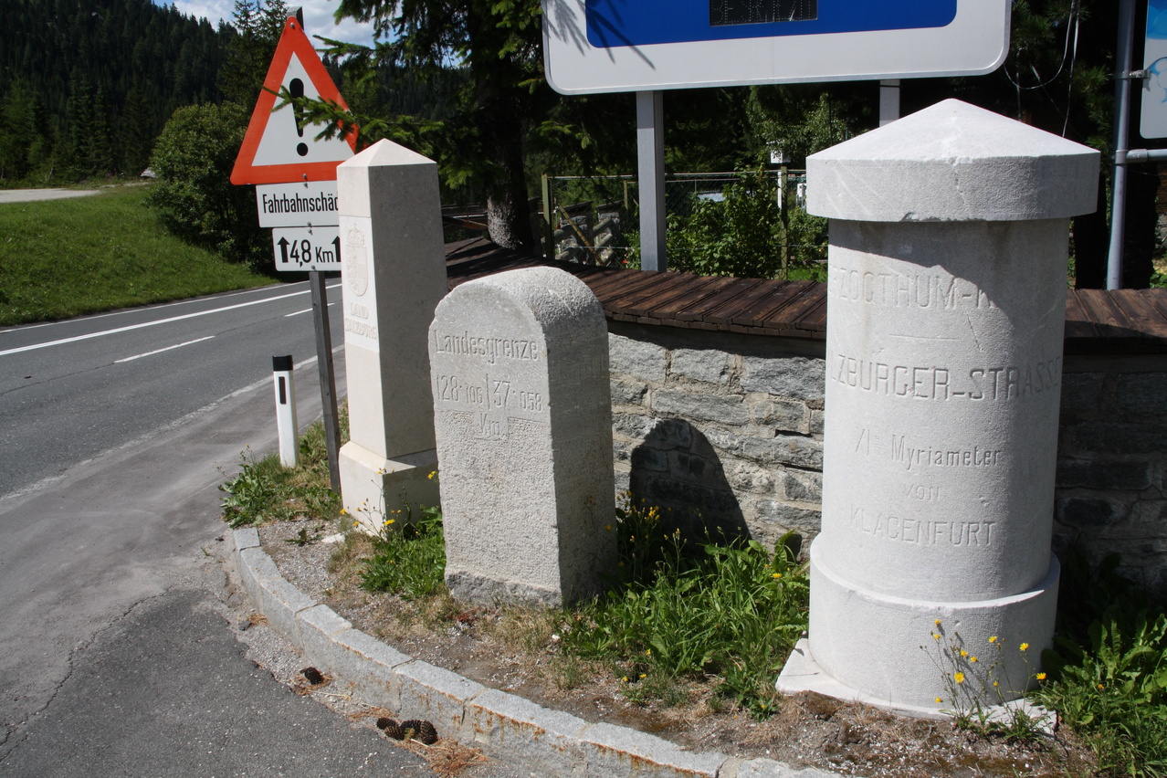 Katschberghöhe, Myriameterstein und Grenzsteine an der Landesgrenze zwischen Kärnten und Salzburg nahe der Passhöhe ![]() 300 dpi JPEG |