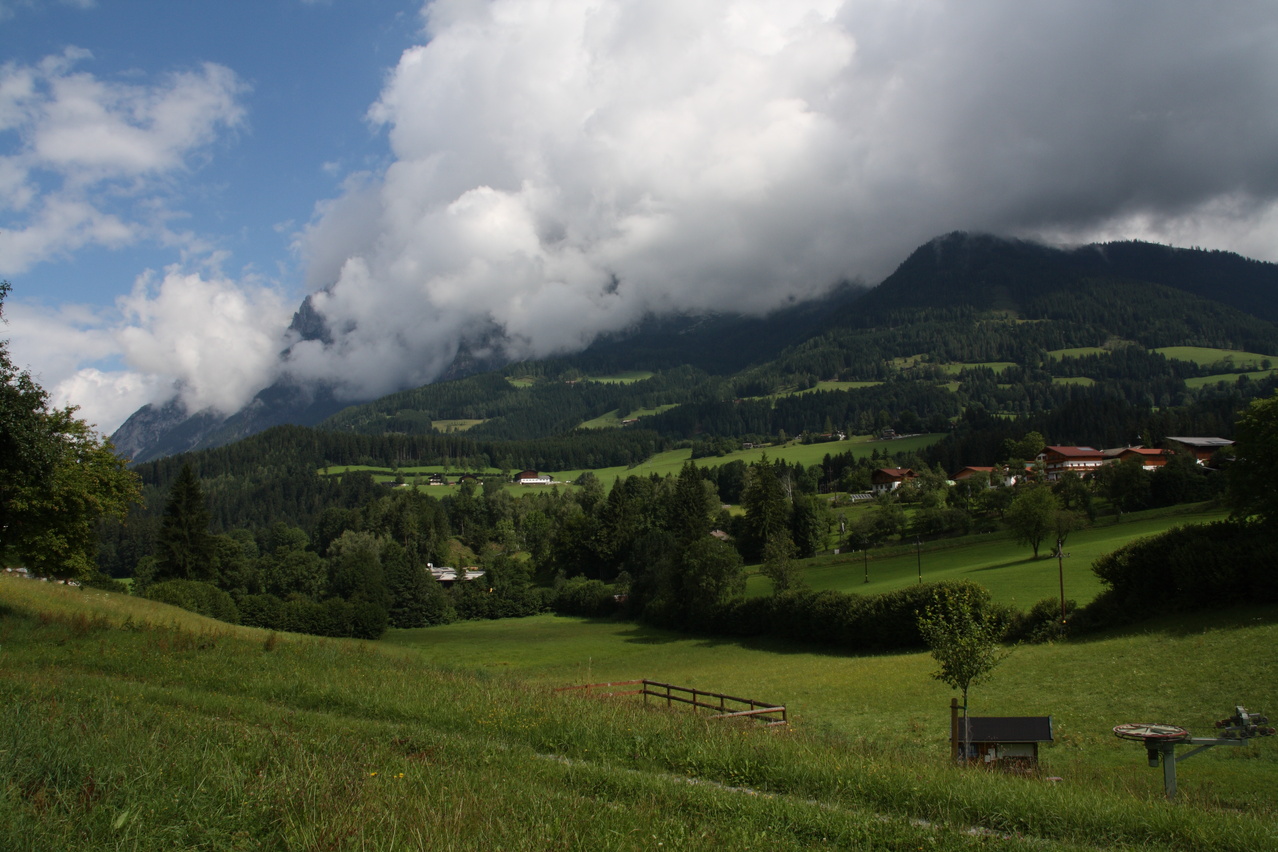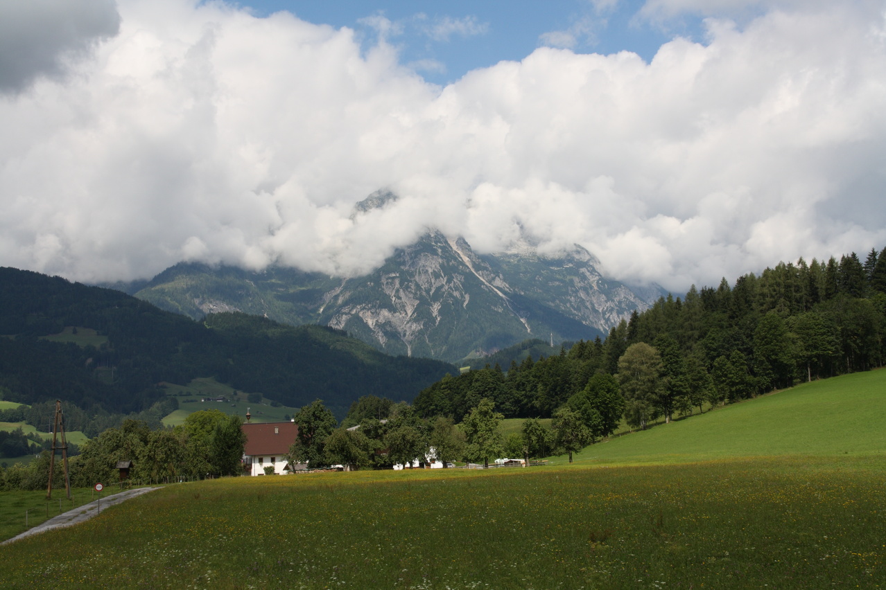 das wolkenverhangene Tennengebirge unmittelbar vor dem Etappenstart ![]() 300 dpi JPEG |