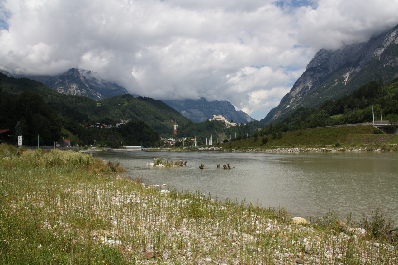 Hagengebirge, Festung Hohenwerfen und Tennengebirge, im Vordergrund die Salzach ![]() 300 dpi JPEG |