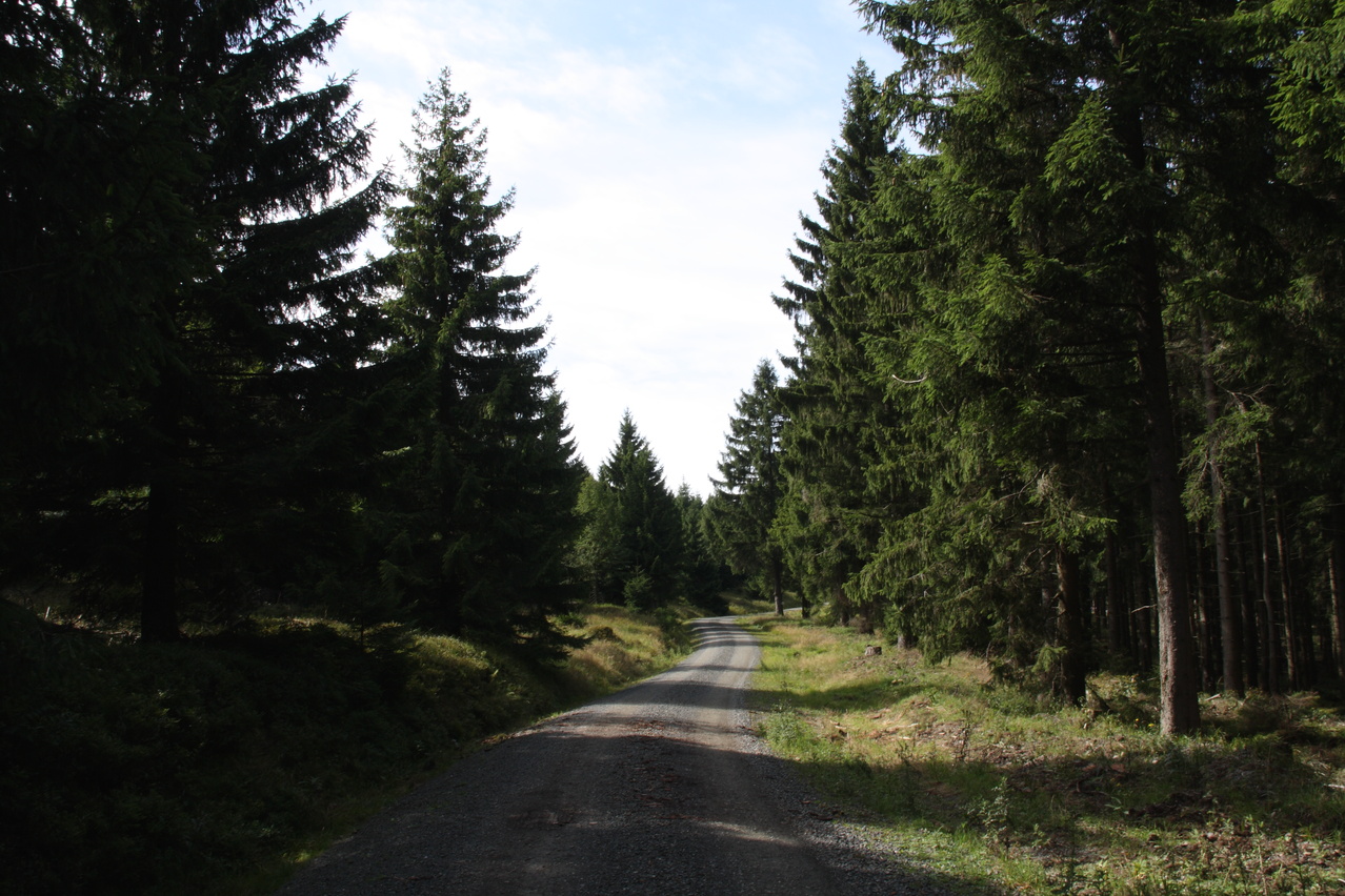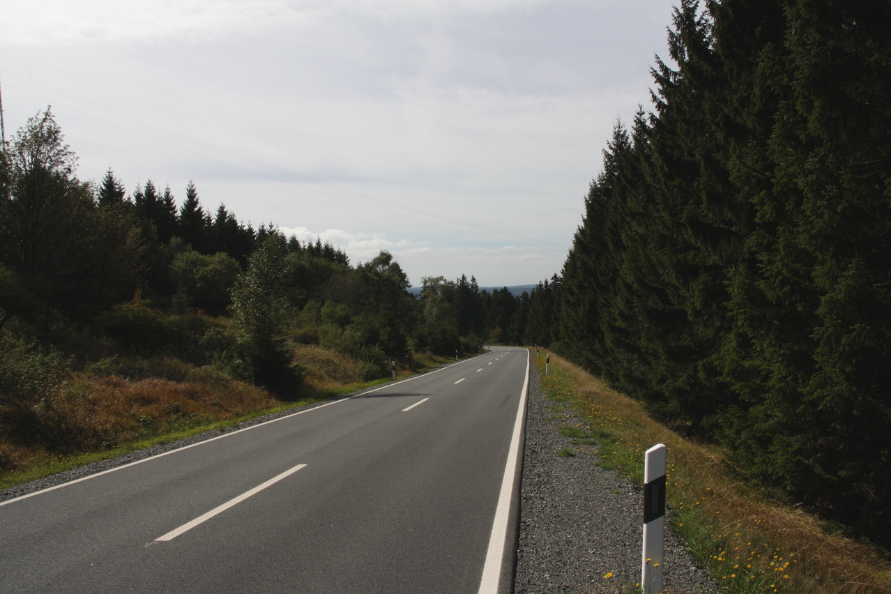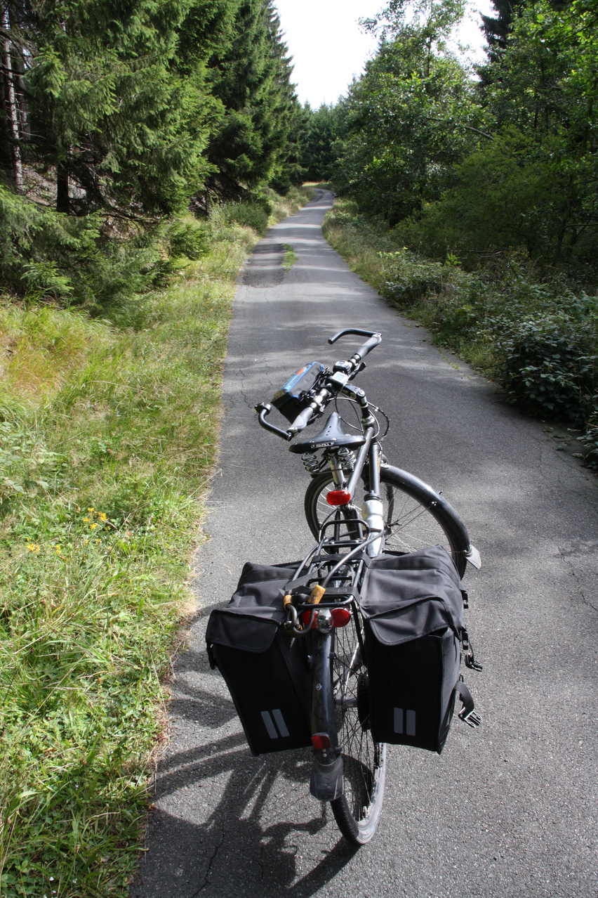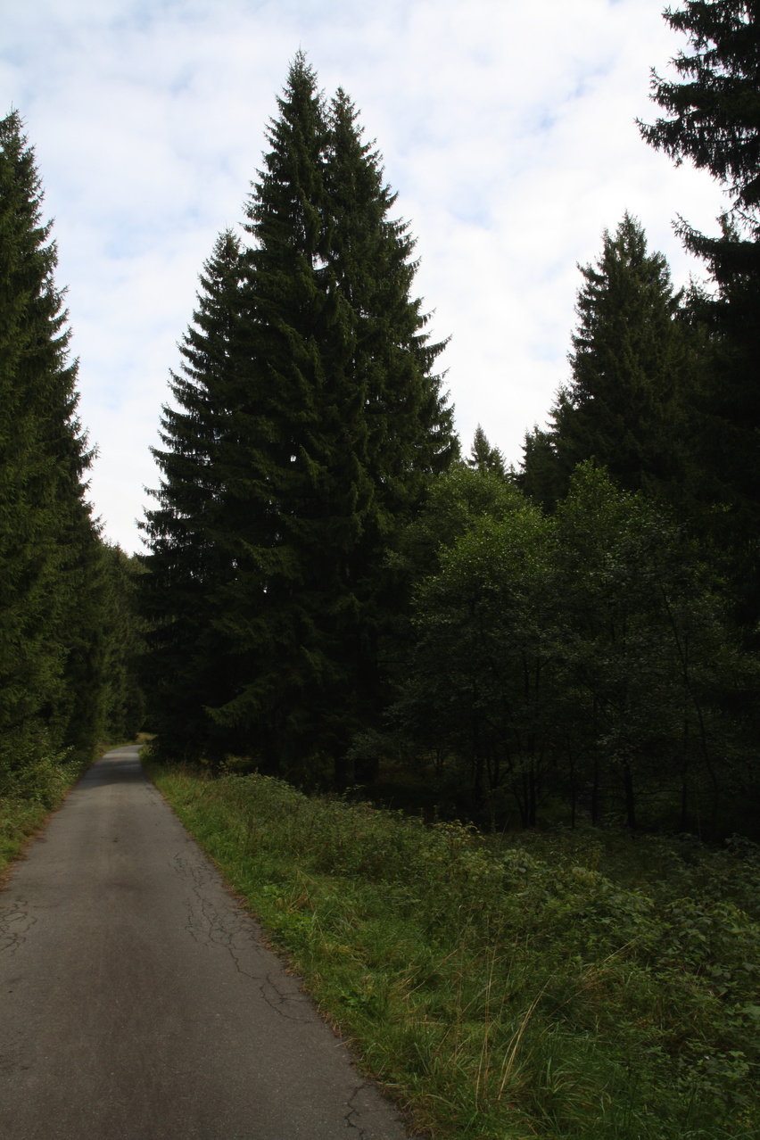 Beschreibung | Da für den Tag schönes Wetter vorhergesagt worden war, wurde trotz zunächst komplett zugezogenem Himmels eine Harztour gestartet. Schließlich war nach dem Sommerurlaub das Wetter sehr mau und dementsprechend boten sich kaum Gelegenheiten für Bergtouren. In Oker ging es bei bedecktem Himmel los, erst am Okerstausee setzte sich allmählich die Sonne durch und die Temperaturen erreichten ein erträgliches Niveau. Dieses Mal wurde am oberen Ende des Weges durch das Kalbetal nicht auf die B4 abgebogen, sondern diese wurde überquert. Ab hier führt eine Schotterpiste nach Torfhaus. Diese Schotterpiste führt zunächst nordöstlich an Torfhaus vorbei und nähert sich auf bis auf wenige Kilometer der Zonengrenze, führt dann parallel zur Zonengrenze nach Süden und knickt knapp unterhalb von Torfhaus nach Westen ab. An dieser letzten Abzweigung führt auch ein kürzerer Waldweg nach Torfhaus, der aber nur mit dem Mountainbike befahrbar ist. Auch der längere geschotterte Weg ist sehr steil und bei Feuchtigkeit etwas rutschig. Die Rückfahrt erfolgte über die L504 und mit vorrückender Tageszeit zog sich der Himmel allmählich wieder zu, wobei zunächst hochliegende Wolken die Sonne trübten. Am folgenden Tag war von Fahrradwetter keine Spur mehr. |