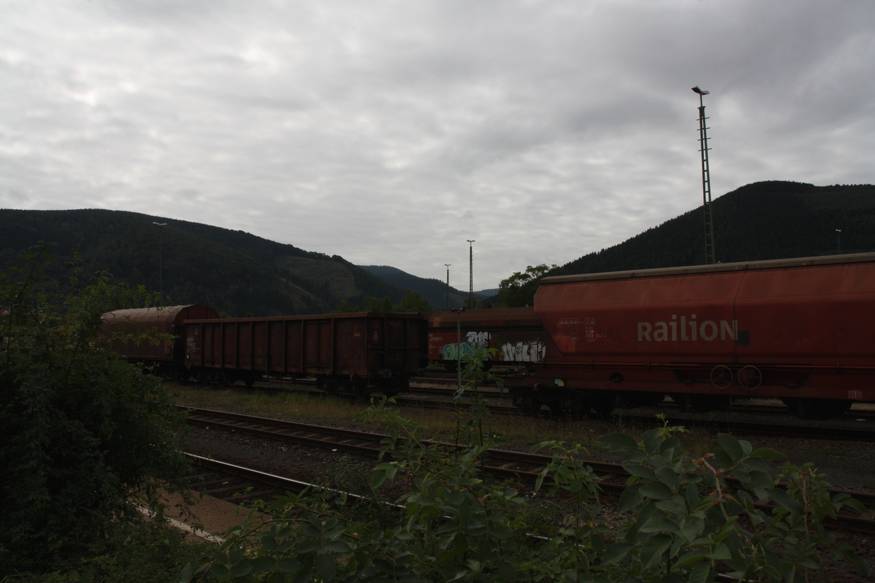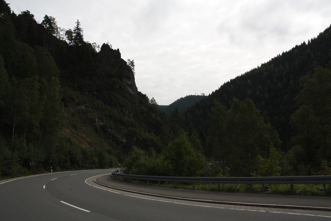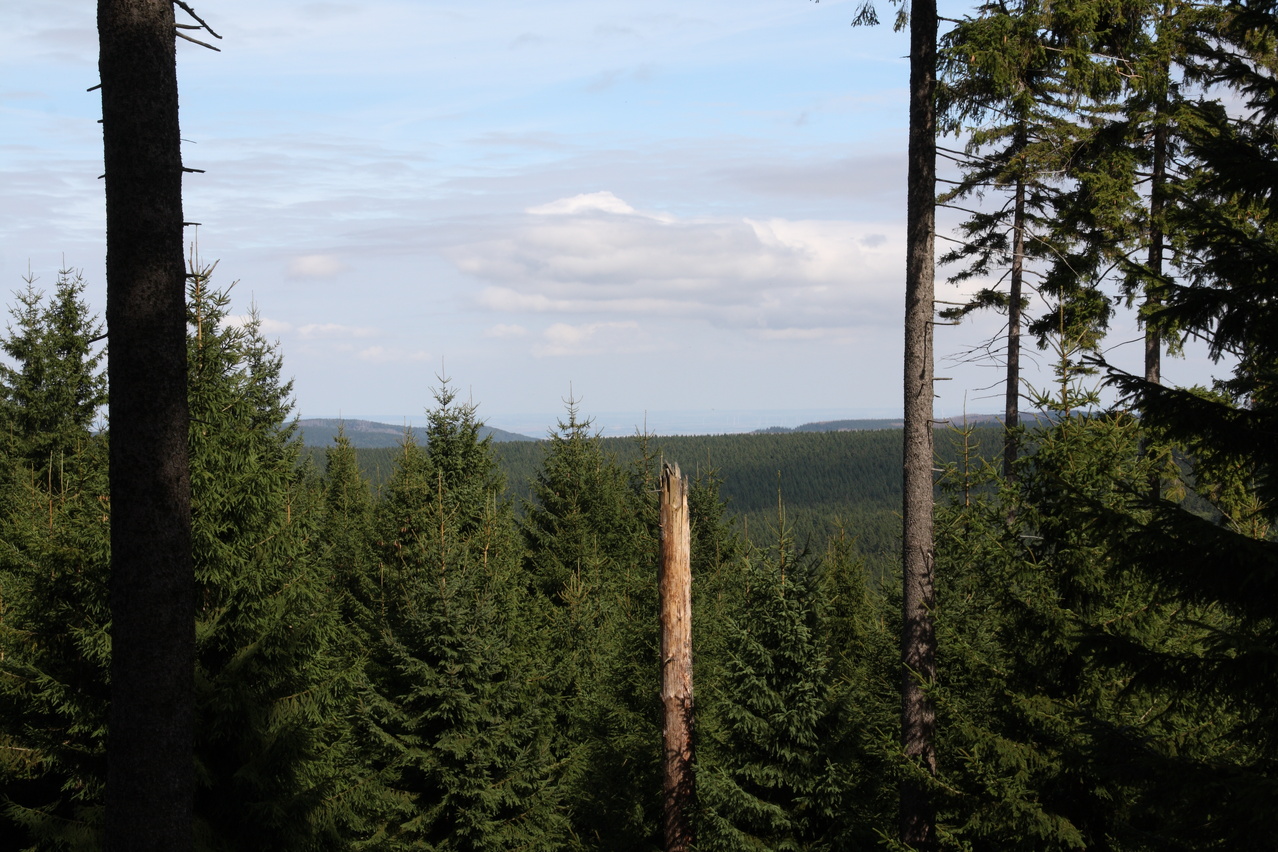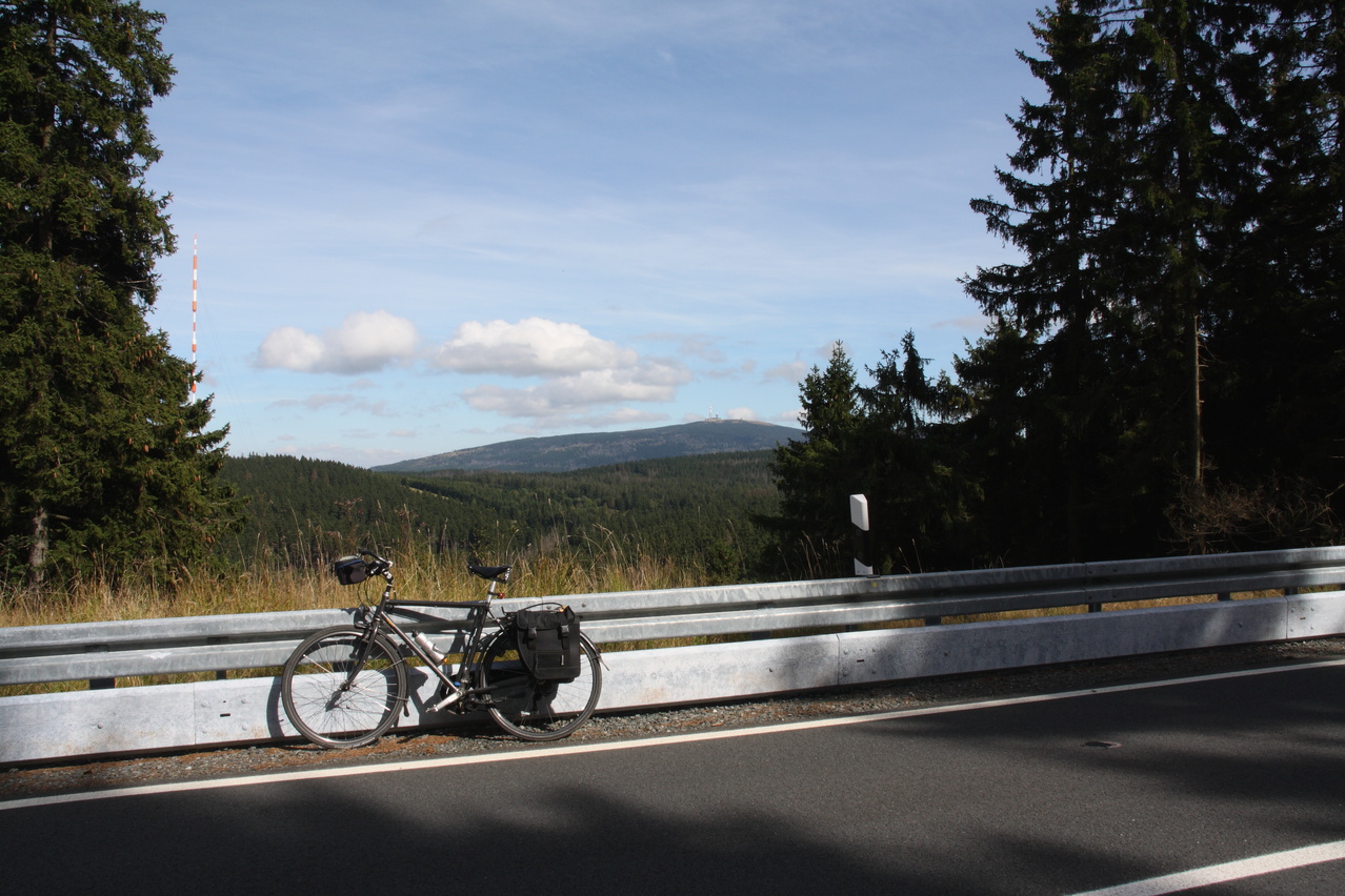 Beschreibung | Da für den Tag schönes Wetter vorhergesagt worden war, wurde trotz zunächst komplett zugezogenem Himmels eine Harztour gestartet. Schließlich war nach dem Sommerurlaub das Wetter sehr mau und dementsprechend boten sich kaum Gelegenheiten für Bergtouren. In Oker ging es bei bedecktem Himmel los, erst am Okerstausee setzte sich allmählich die Sonne durch und die Temperaturen erreichten ein erträgliches Niveau. Dieses Mal wurde am oberen Ende des Weges durch das Kalbetal nicht auf die B4 abgebogen, sondern diese wurde überquert. Ab hier führt eine Schotterpiste nach Torfhaus. Diese Schotterpiste führt zunächst nordöstlich an Torfhaus vorbei und nähert sich auf bis auf wenige Kilometer der Zonengrenze, führt dann parallel zur Zonengrenze nach Süden und knickt knapp unterhalb von Torfhaus nach Westen ab. An dieser letzten Abzweigung führt auch ein kürzerer Waldweg nach Torfhaus, der aber nur mit dem Mountainbike befahrbar ist. Auch der längere geschotterte Weg ist sehr steil und bei Feuchtigkeit etwas rutschig. Die Rückfahrt erfolgte über die L504 und mit vorrückender Tageszeit zog sich der Himmel allmählich wieder zu, wobei zunächst hochliegende Wolken die Sonne trübten. Am folgenden Tag war von Fahrradwetter keine Spur mehr. |