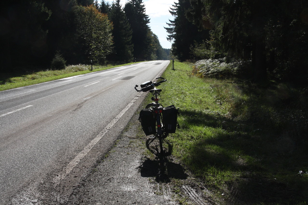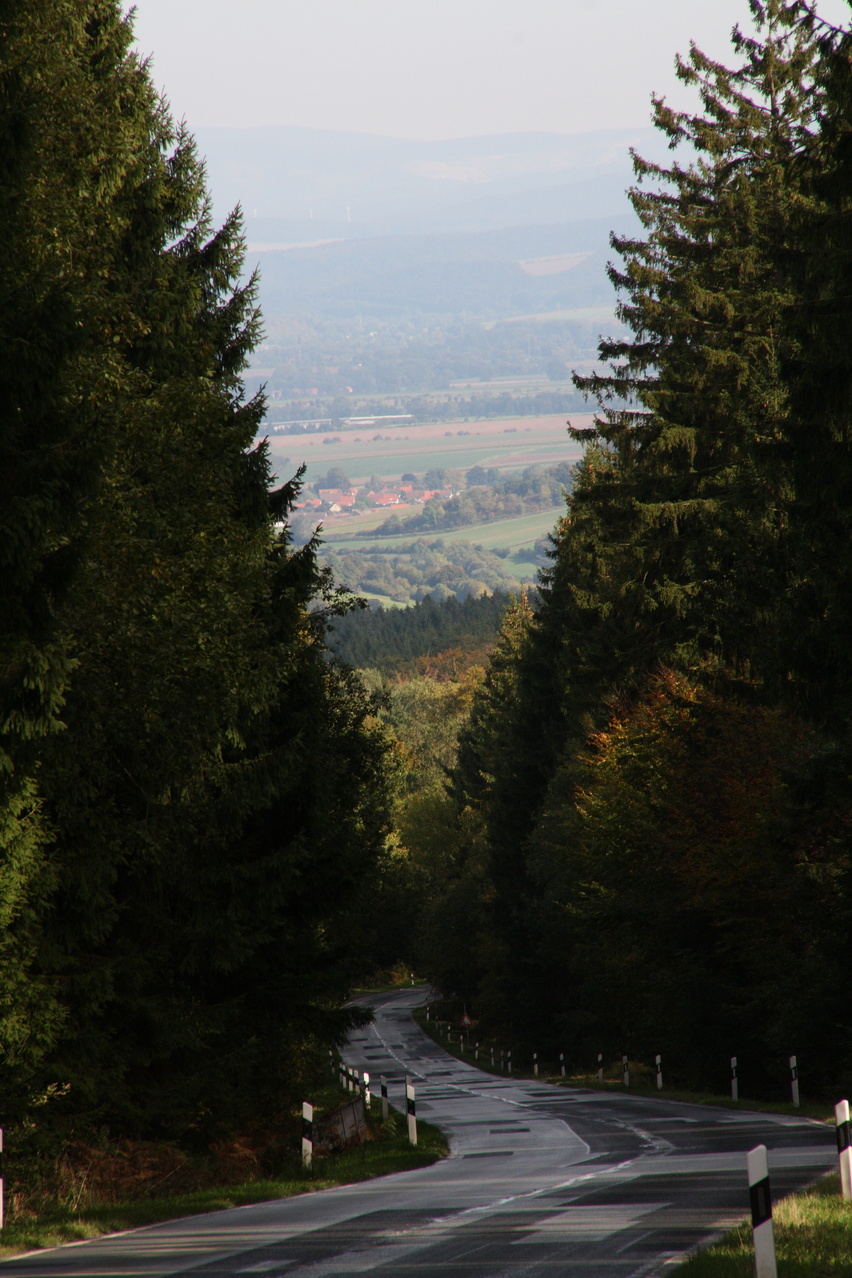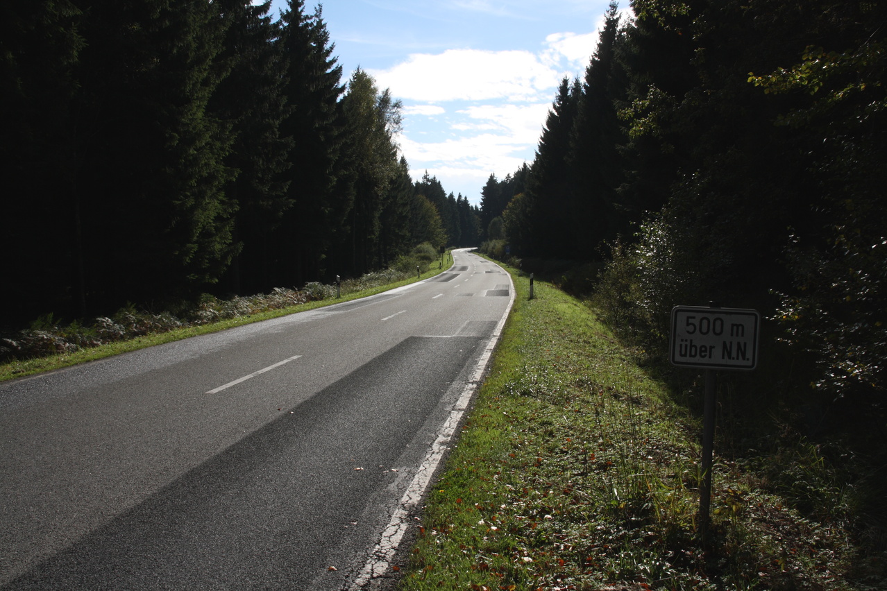 Beschreibung | Ostwindwetterlage – schön, aber auch schön kalt in dieser Jahreszeit. Daher wurden nicht der Harz, geschweige denn der Brocken in Angriff genommen, sondern nur der Solling überquert. Die gewählte Route vermittelt wenigstens noch etwas Bergfahrgefühl. Außerdem kam der Wind von hinten und die Fahrt führte der Sonne entgegen. Letzteres machte sich jedoch in teilweise sehr schwierigen Lichtverhältnissen für die Fotografie bemerkbar, da die Sonne jahreszeitlich bedingt auch schon recht tief stand. Die Temperaturen reichten gerade so für kurze Klamotten bergauf. Für die langgezogene Abfahrt musste was Langes drüber, das erst im Wesertal wieder abgelegt werden konnte. Von den Temperaturen und der Lichtstimmung her und auch an der Vegetation machte sich schon der Herbst bemerkbar. Zu Beginn der Tour wurde Einbeck südlich umfahren, wozu ab Salzderhelden Nebenstraßen, Feld- und Schleichwege genutzt wurden. Diese Route bis Dassel ist sehr verkehrsarm, dafür aber etwas welliger als die Route über Einbeck. |