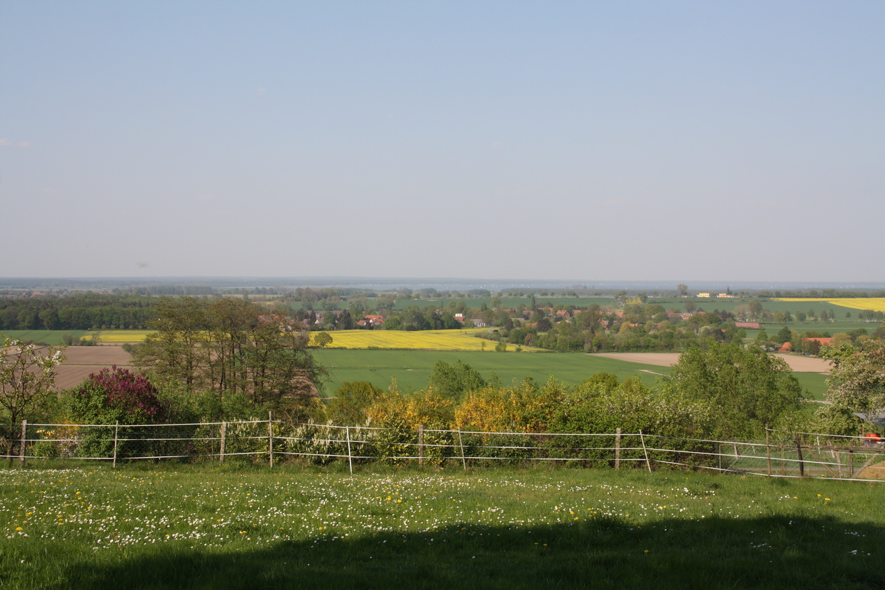 Blick nach Süden, im Dunst schemenhaft der Nordrand des Weserberglandes ![]() 300 dpi JPEG |