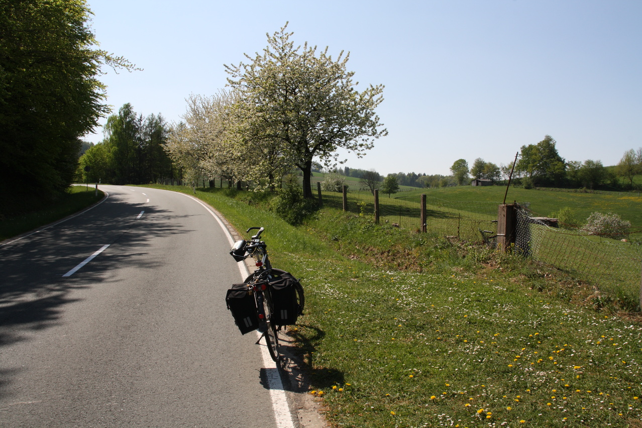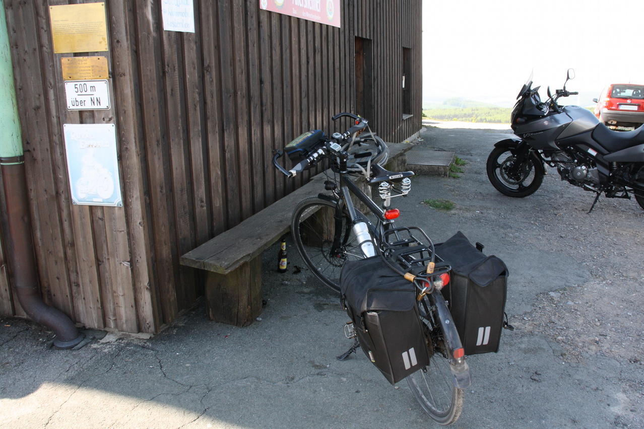 Beschreibung | Die Fahrt auf den Köterberg bietet sich im Frühjahr an, da die Wälder längs der Strecke überwiegend Laubwälder sind und im Frühjahr, wenn das frische Laub gerade austreibt, noch eine nennenswerte Bodenvegetation in den Wäldern sichbar ist. An diesem Tag passte zudem das Wetter, und so folgte auf die Harztour auf den Brocken und den "flachen Alptraum mit Anstandshügel" nun der "Brocken des Weserberglandes". Anders als im Harz oder gar im Hochgebirge sind bei dieser Tour die Höhenmeter nicht in einer langen Steigung zu überwinden. Zunächst kommt der Anstieg aus dem Emmertal auf die Ottensteiner Hochfläche, dann folgt ein recht kurzer Anstieg zwischen Wörderfeld und Falkenhagen, daran schließt sich dann der Schlussanstieg auf den Köterberg an, der auch der schwierigste der drei Anstiege ist, zumal man bis dahin schon einige Höhenmeter und Streckenkilometer in den Beinen hat. Vom Gipfel über Niese und Rischenau geht es dann aber abgesehen von einigen kleinen Bodenwellen stetig bergab bis Lügde. In Bad Pyrmont folgte an diesem Tag ein längerer planmäßiger Aufenthalt, der sich nicht in der Reisezeit wiederspiegelt. Die Anfahrt zum Treffpunkt brachte noch ein paar Höhenmeter innerhalb von Bad Pyrmont mit sich. |