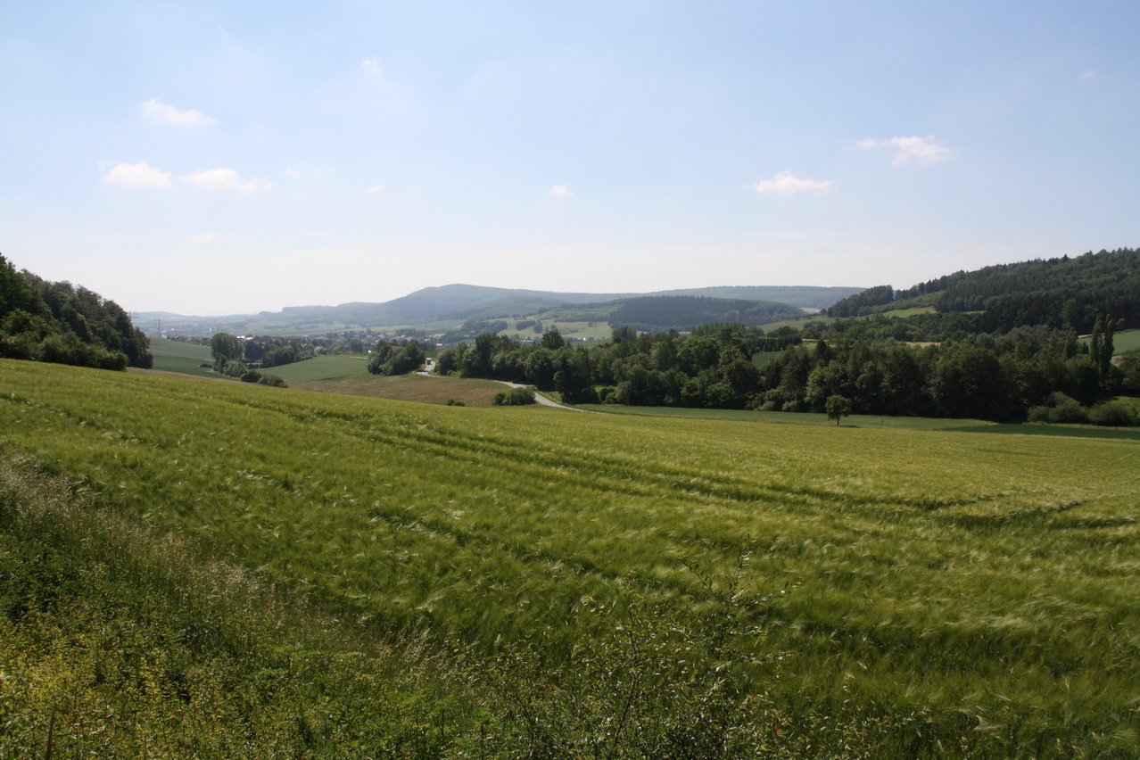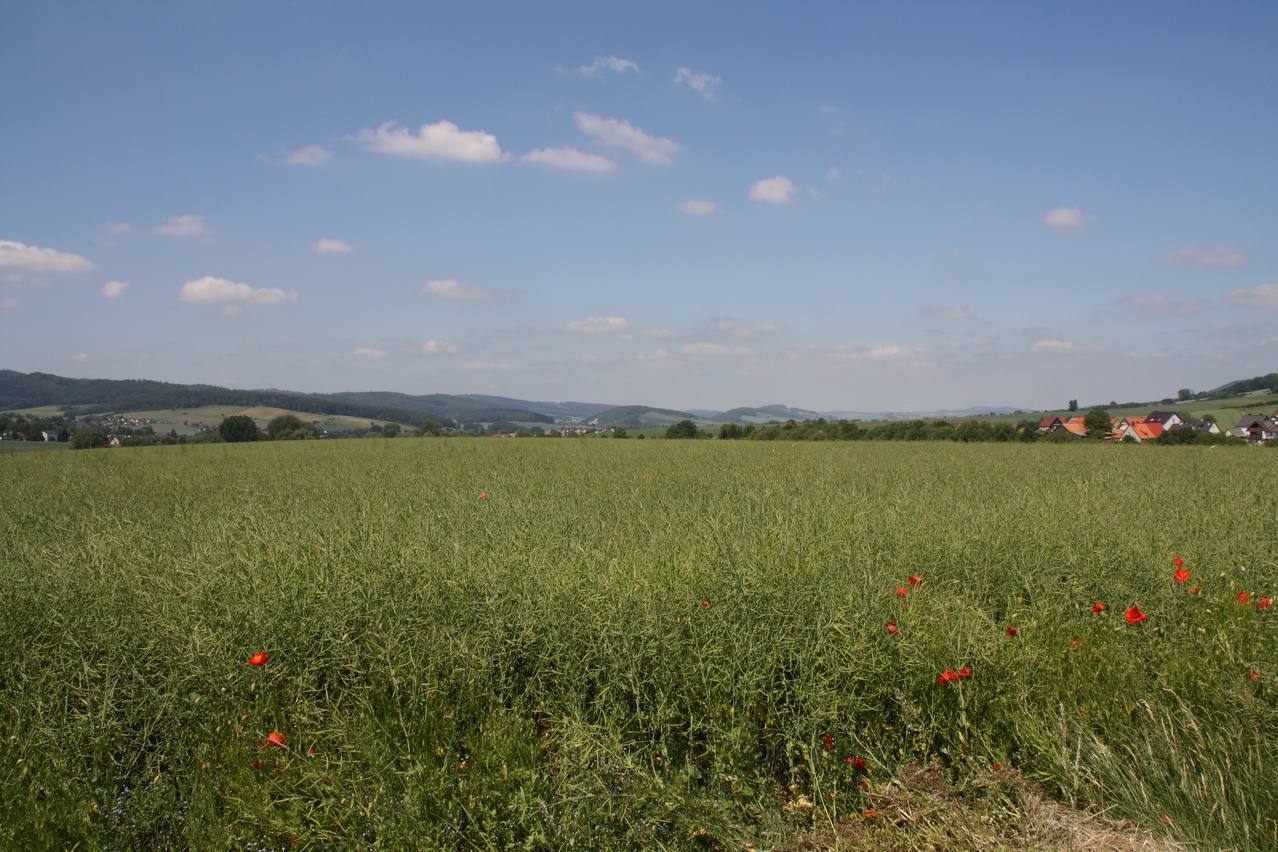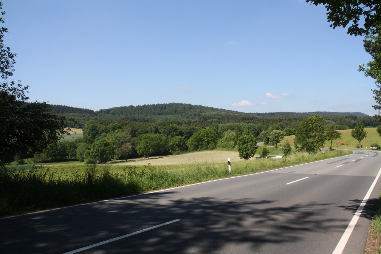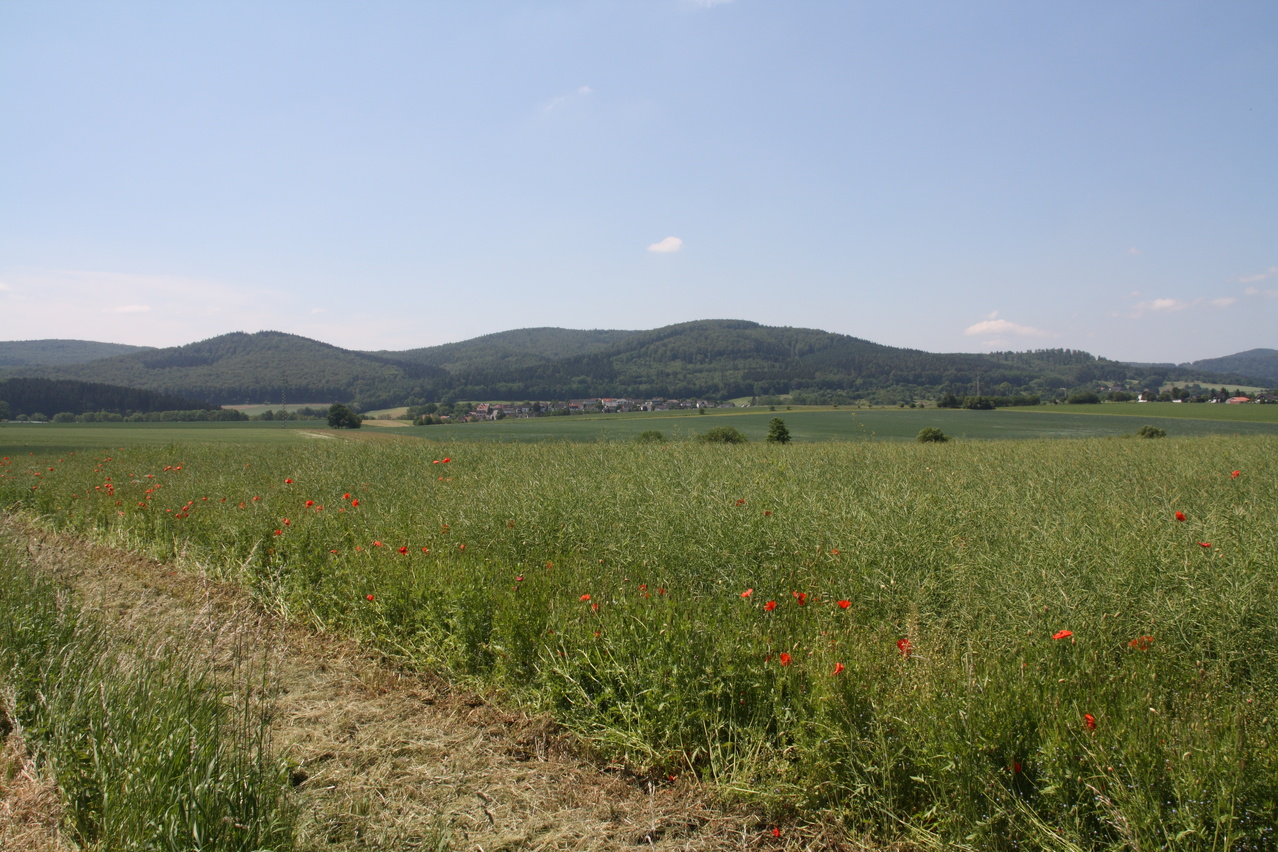 südlich von Stadtoldendorf auf dem Europaradweg R1, Blick auf Holzberg (links), Deensen und Solling ![]() 300 dpi JPEG |