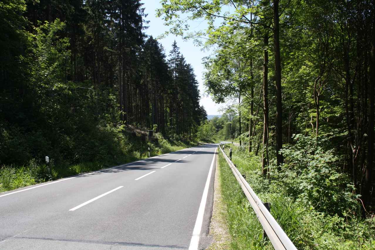 Beschreibung | Diese Tour wurde so nur gefahren, weil am Zielort ein längerer planmäßiger Aufenthalt anstand. Das Wetter hätte für mehr gereicht. Trotz der verhältnismäßig vielen Höhenmeter enthält diese Route keine steilen Anstiege und kein Anstieg geht über mehr als 180 Höhenmeter am Stück. Alles in allem ist die Route landschaftlich abwechslungsreich, dafür fehlt ein längerer Anstieg, der Bergfahrgefühl aufkommen ließe. Der Rote Fuchs ist ein Bergpass über den Hils, wobei der Begriff "Bergpass" natürlich in Relation zu den umgebenden Mittelgebirgen zu betrachten ist. In der Ostrampe zum Roten Fuchs werden in einer Serpentine mal ganz kurz bis zu 11 % Steigung erreicht. Zwischen Lenne und Deensen verläuft die Route mehr oder weniger parallel zur Bahnstrecke Altenbeken-Kreiensen. Dieser Streckenabschnitt wurde am Abend mit dem Zug von Holzminden nach Kreiensen gefahren. Im Solling hätte es gerne bis auf die Große Blöße gehen dürfen, aber dafür war die Zeit zu knapp. Die Straße von Schießhaus nach Holzminden, die für den Stinkeverkehr gesperrt ist, befindet sich in einem extrem schlechten Zustand. |
