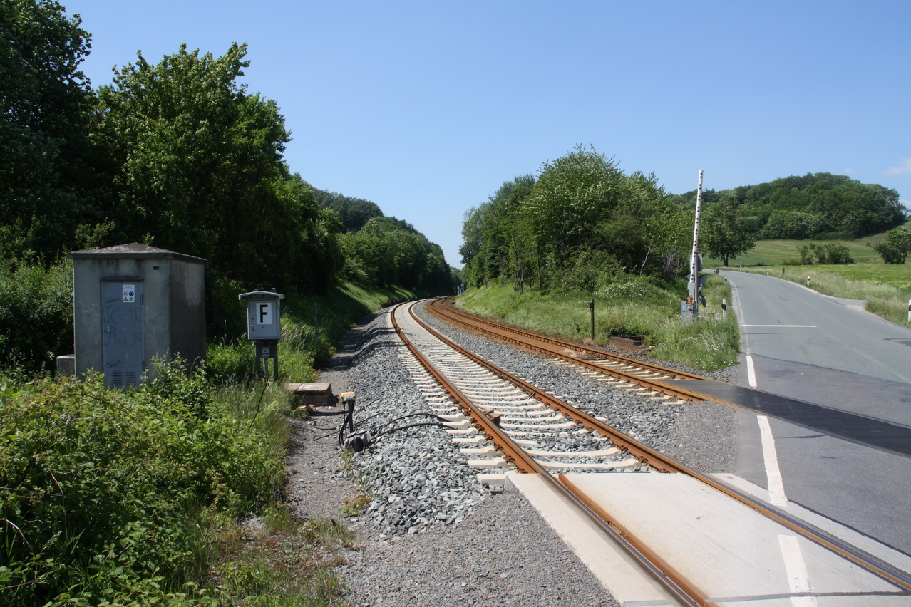 Bahnübergang zwischen Lenne und Stadtoldendorf über die Bahnstrecke Altenbeken-Kreiensen, Blick in Richtung Lenne ![]() 300 dpi JPEG |