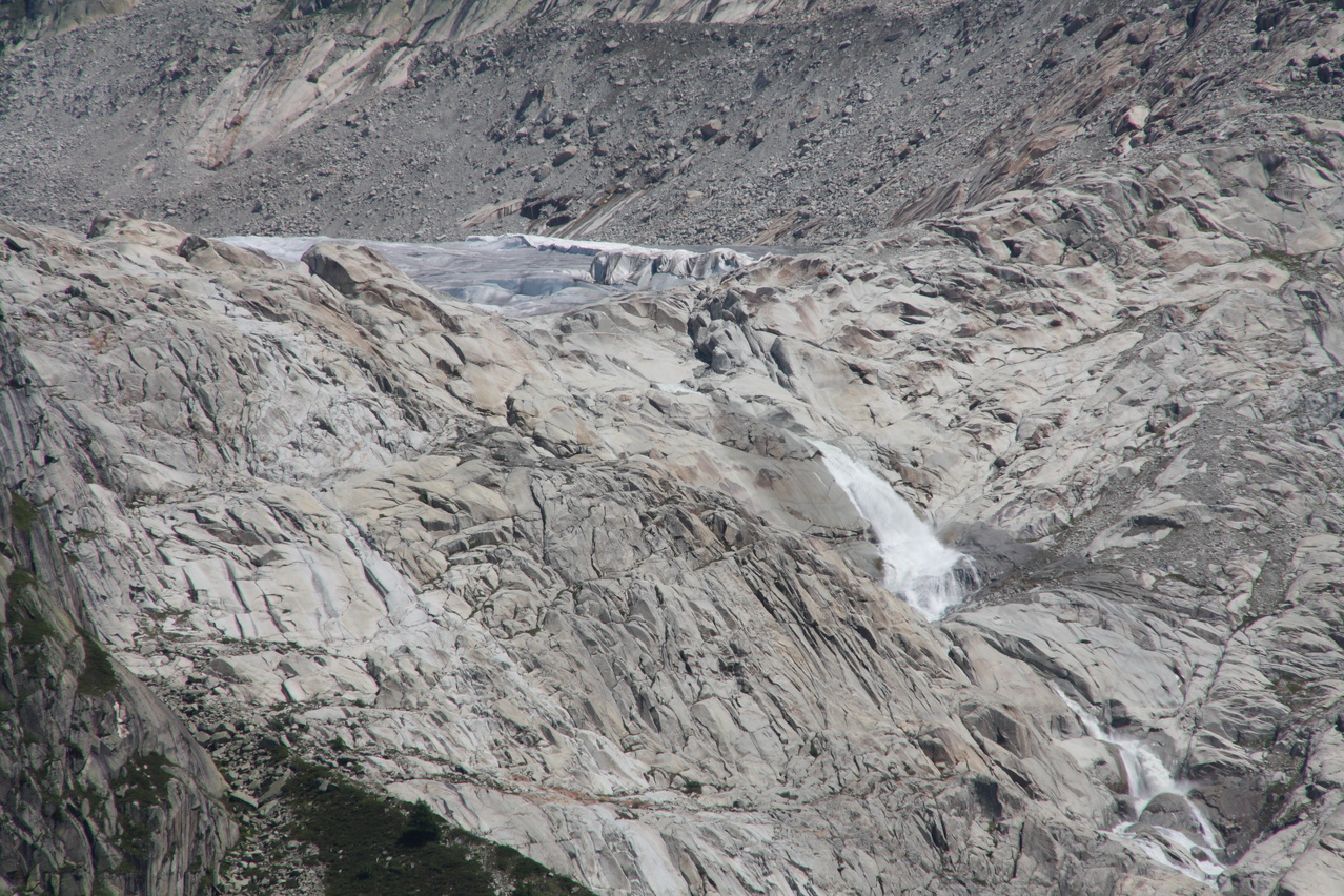 Zoom auf die "Rhonequelle", die Gletscherzunge des Rhonegletschers, an der die Rhone entspringt ![]() 300 dpi JPEG |