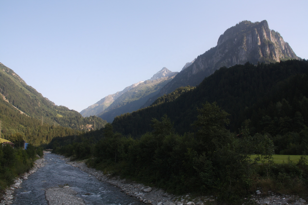 die Aare in Innertkirchen, Blick flussaufwärts, rechts der Loibstock ![]() 300 dpi JPEG |