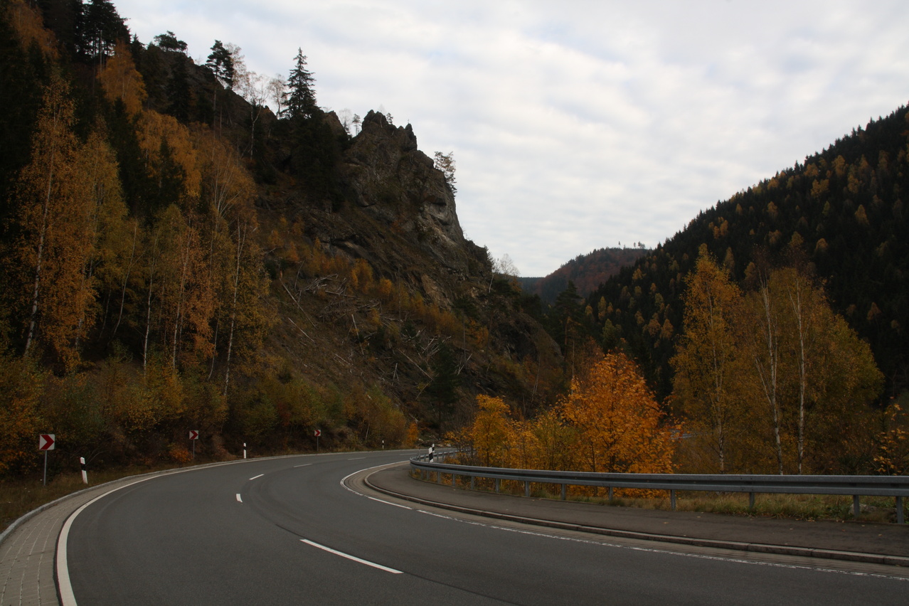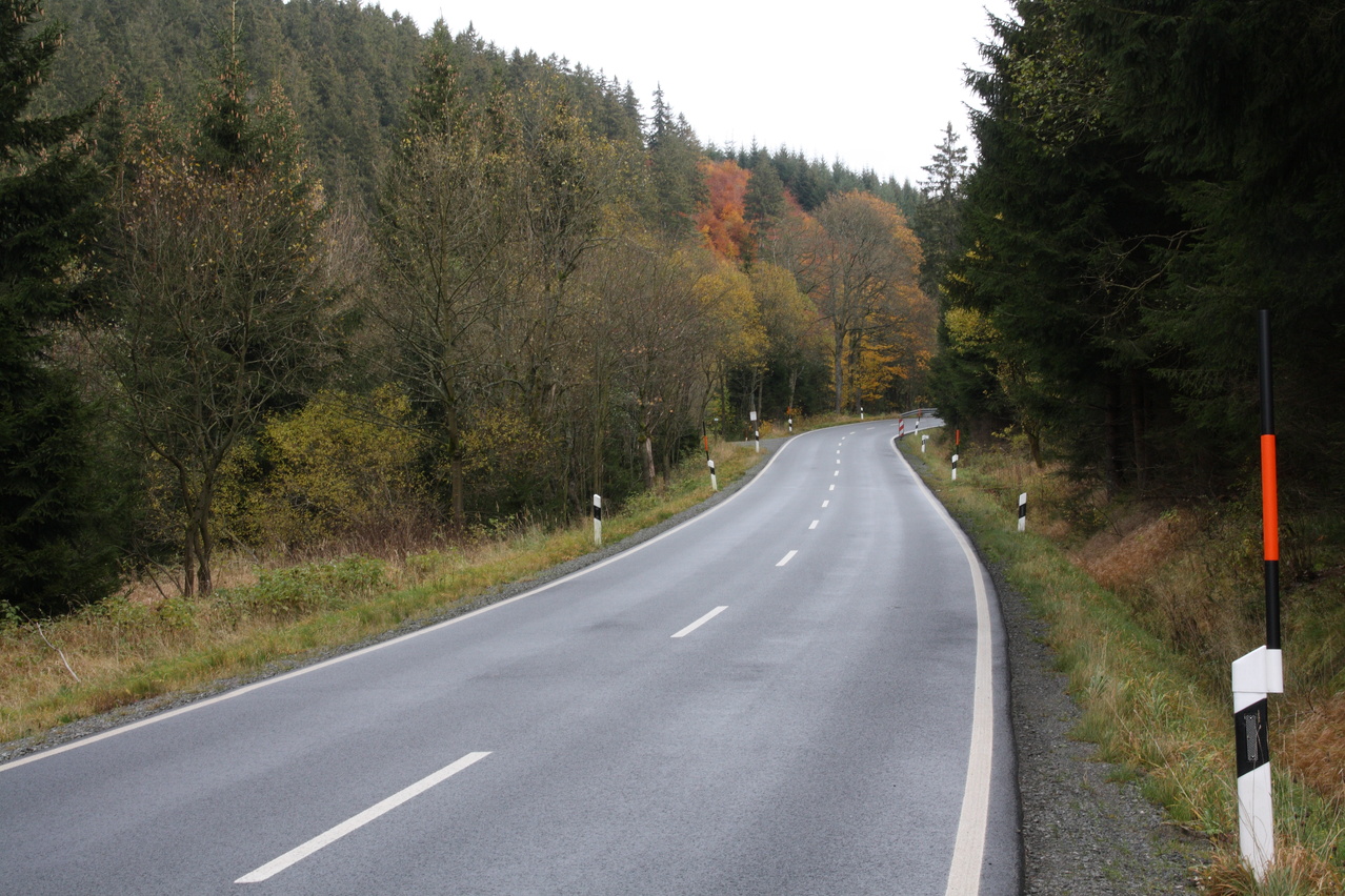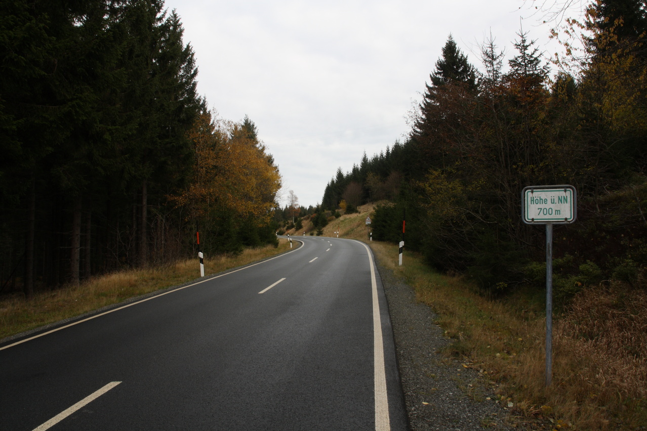 Beschreibung | Noch einmal dieses Jahr sollte es weit rauf gehen. Die Temperaturen waren grenzwertig, weshalb die Tour in langen Klamotten gefahren werden musste. Die anfangs dichte Bewölkung lockerte am Tag zunehmend auf, so dass noch die Sonne raus kam. Insgesamt waren Landschaft und Lichtstimmung schon extrem herbstlich. Diese Tour sollte dann auch der Abschied von den höheren Mittelgebirgen in diesem Jahr sein. Auf den Tag genau vor einem Jahr war die gleiche Tour gefahren worden, und auch damals war das eine Abschiedstour gewesen. |