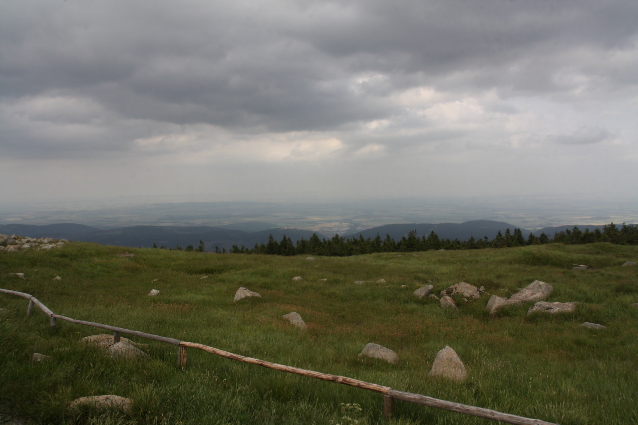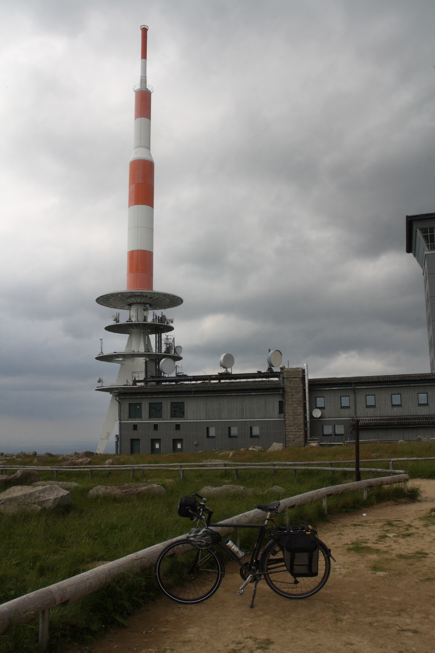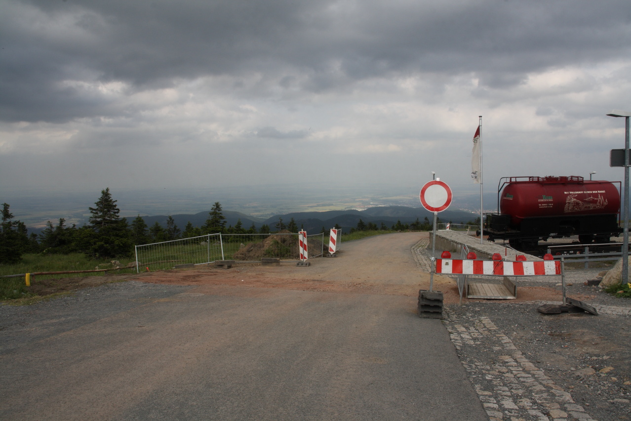 Beschreibung | Feuchtheiße Luft lag über dem Land, entsprechende Unwetterwarnungen bestanden. Aber unten heiß bedeutet oben genau richtig. Daher wurde der Brocken angefahren, was natürlich auch mit der näher rückenden Alpentour zu tun hatte. Bei der Wetterlage bestand das Risiko, dass die Tour wegen eines aufziehenden Unwetters mit einer Notabfahrt hätte beendet werden müssen, aber das Wetter hielt durch. Die bedrohlicheren Wolken fielen am späten Nachmittag mehr und mehr in sich zusammen. Diese Wetterlage und vor allem wohl die herausgegebenen Unwetterwarnungen hatten einen angenehmen Nebeneffekt. Auf der Brockenstraße war es selbst ganz oben recht leer. Dafür war die Fahrt durch den Baustellenbereich, der sich auf den obersten Teil der Brockenstraße erstreckte, etwas lästig. |