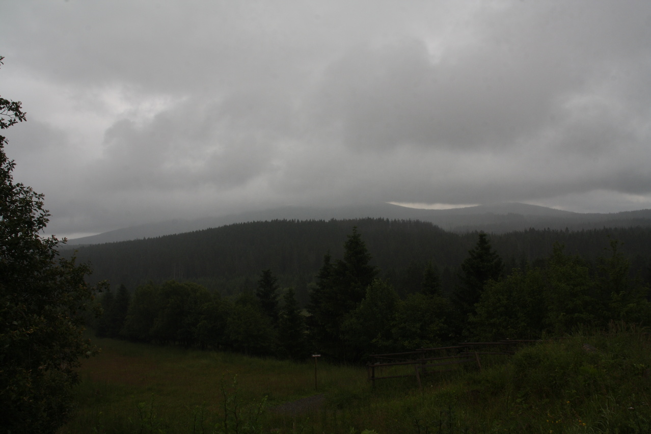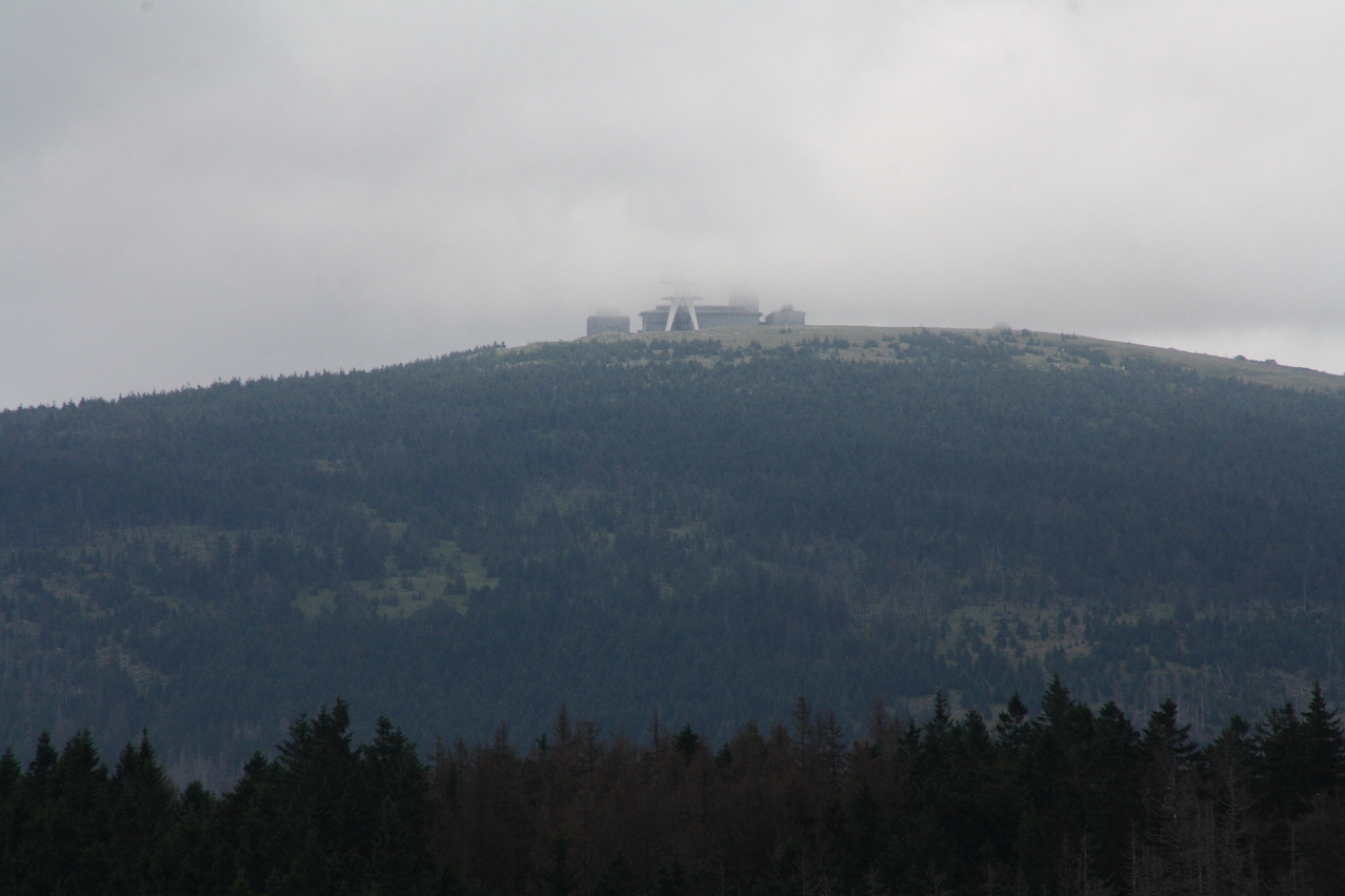 Beschreibung | Da in der Vorwoche kaltes Regenwetter eine Tour verhinderte, mussten angesichts der bevorstehenden Alpentour an diesem Wochenende noch einige Höhenmeter auf dem Fahrrad überwunden werden. Bei wolkigem und nicht gerade warmem Wetter wurde nicht lange überlegt. Torfhaus geht immer! Bis zum Dach der Tour verlief die Tour unspektakulär. Dort aber zeigte sich der Brockengipfel gerade so unterhalb der Wolkenkante. Der Sendemast steckte schon halb in den Wolken. In Torfhaus angekommen lag die Wolkenuntergrenze fast genau auf Höhe des Brockengipfels. Nach Bratwurst und "Spatengang" in Torfhaus setzte fast schlagartig starker Regen ein, wodurch es auch unangenehm kalt wurde. Deshalb wurde unter Vollschutz auf der B4 nach Bad Harzburg abgefahren. Das Wetter war genau die Motivation, die für Hochgebirgstouren invers optimal ist. Unten angekommen war der Regen natürlich wieder vorbei. |