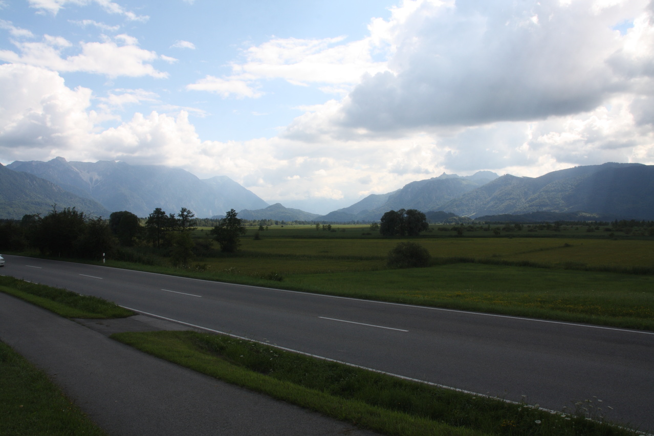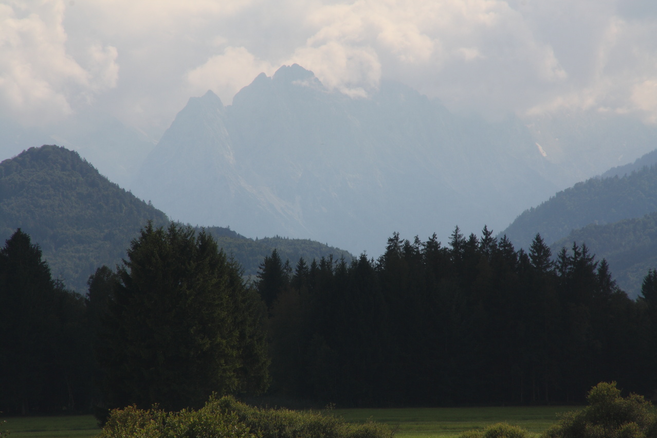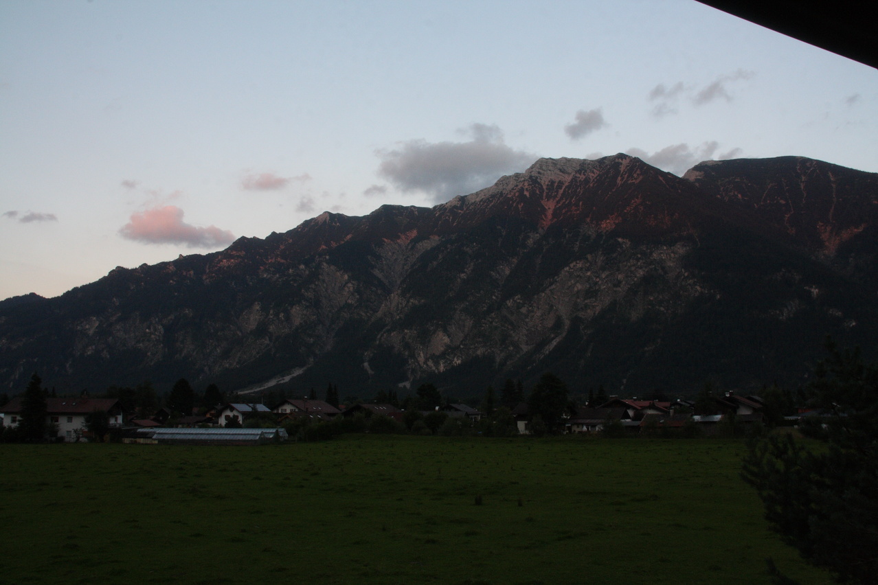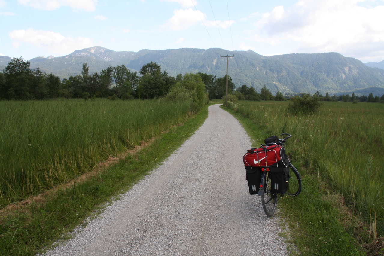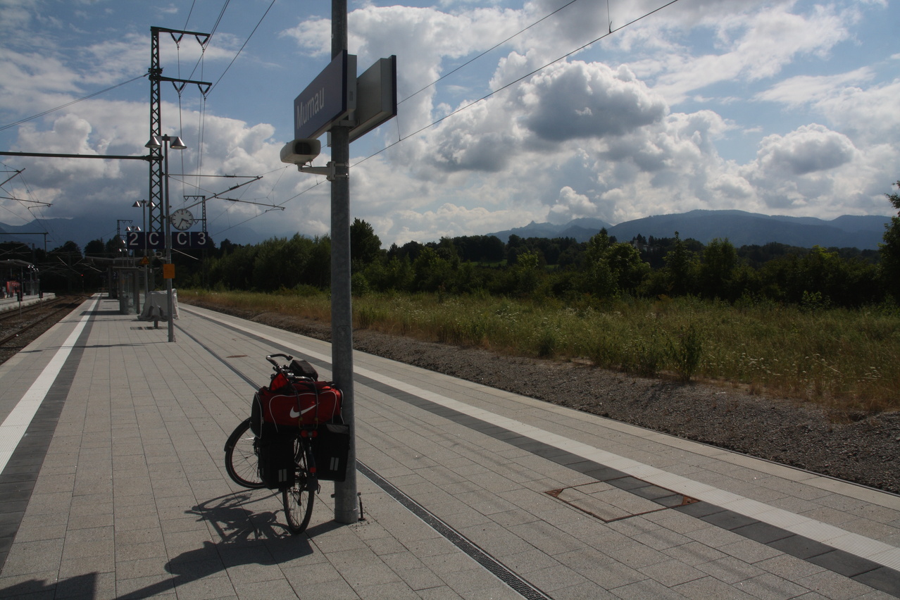 Beschreibung | Nach einem wie immer viel zu langen Jahr ohne richtige Berge ging es nun endlich per Bahn Richtung Alpen. Die Bahn war sogar ausnahmsweise mal pünktlich. Das Umsteigen in München-Pasing war allerdings mit einer ziemlichen Schweinerei verbunden. Dort wird gerade der Bahnhof saniert und aus irgendeinem nicht nachvollziehbaren Grund waren die Bahnsteige mit Schotter bedeckt, was zu entsprechender Staubentwickung führte. Da am Nachmittag die Sonne schien, wurde die Bahnfahrt bereits in Murnau beendet. In Murnau auf dem Bahnhof stach ein großes Plakat mit dem DB-Mauwurf ins Auge, was auf Baustellen hindeutete. Volltreffer! Ab dem 03.08.2012 sollte die Strecke zwischen Murnau und Weilheim komplett gesperrt sein, der Verkehr sollte mit Schienenersatzverkehr (SEV), also Bussen abgewickelt werden. Damit war klar, dass die Rückfahrt nicht wie geplant durchgeführt werden konnte. Und zumindest in Norddeutschland ist SEV mit Fahrradmitnahme immer so eine Sache. Nach der Bahnfahrt folgte dieses Mal ein echter Prolog. Die restlichen flachen Kilometer von Murnau nach Oberau wurden auf dem Fahrrad zurückgelegt, wobei auf nicht asphaltierten, aber bis auf wenige Stellen gut fahrbaren Radwegen der Ostrand des Murnauer Mooses durchquert wurde. In Oberau beim Abendessen wurde die Kneipe von einer Trachtengruppe mit dicke-Backen-Musik gestürmt, was die Mahlzeit etwas unruhig gestaltete. Aber handgemachte Musik ist immer noch besser als ein irgendwo plärrender Ghettoblaster. |