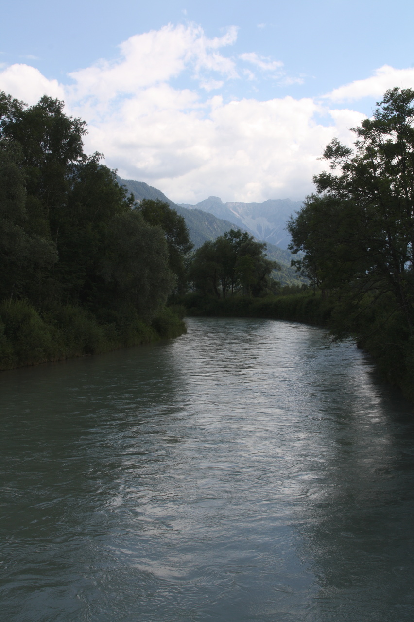 die Loisach zwischen Ohlstadt und Eschenlohe, Blick flussaufwärts nach Süden ![]() 300 dpi JPEG |