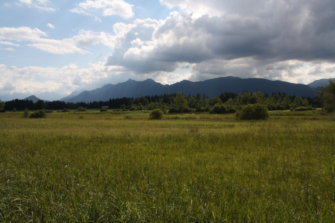 Blick über das Eschenloher Moss auf die Ammergauer Alpen, links im Hintergrund das Zugspitzmassiv ![]() 300 dpi JPEG |