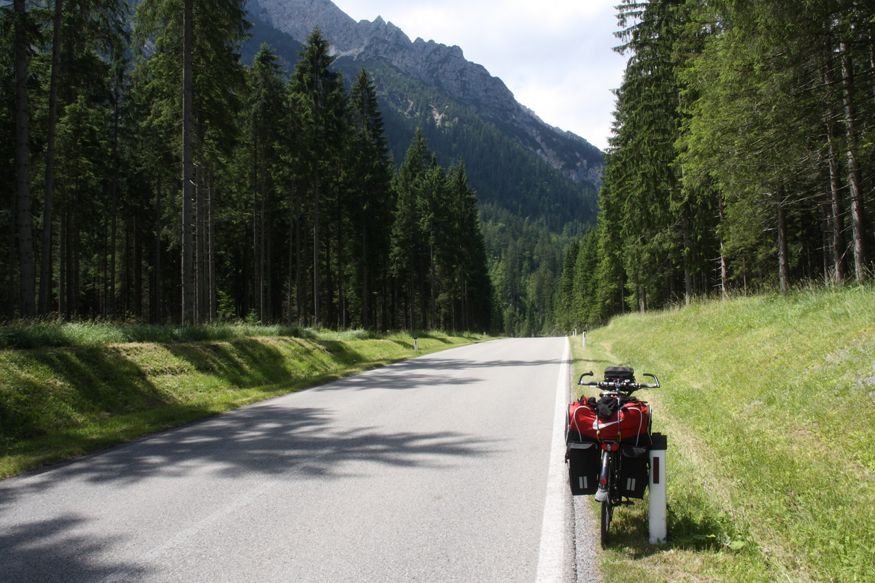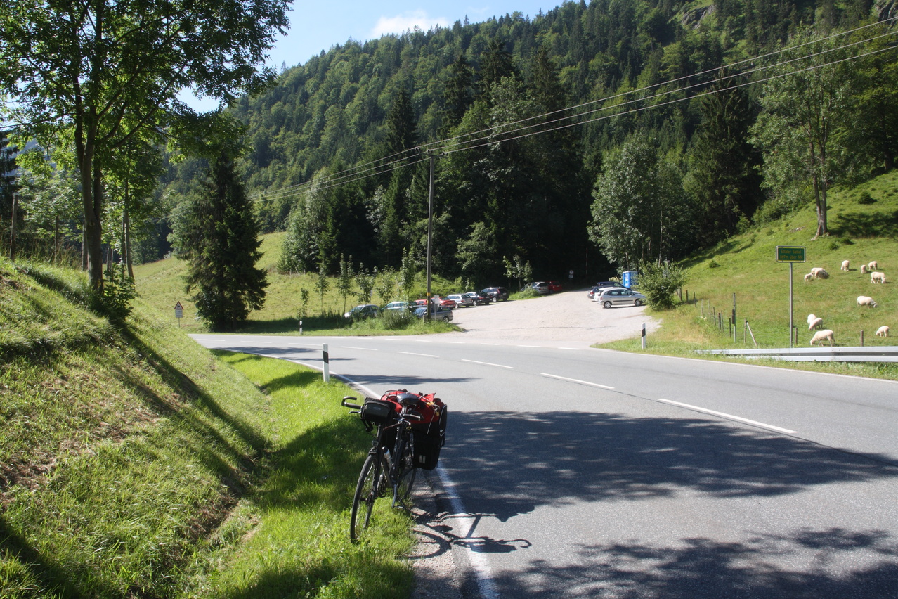 Beschreibung | Mal was anderes: eine echte Rundfahrt, von Oberau nach Oberau in zwölf Tagen. Diese Rundfahrt ist vom Niveau her mit Abstand nicht mit den großen Rundfahrten der Profis zu vergleichen, die auf Rennrädern ohne Gepäck fahren und dabei regelmäßig das "Spritzenjoch", den "Passo dell' Epo" und den "Col d'amphétamine" im Streckenprofil haben. Ohne chemische Nachbrenner, dafür mit dem Trekkingrad unter'm Hintern und mit vollem Gepäck auf dem Fahrrad ging es nun in die erste Etappe, die zwar nicht so viele Höhenmeter beinhaltete, dafür aber recht lang war. Gleich ab Oberau ging es in den ersten ordentlichen, aber noch gut tretbaren Anstieg zum Ettaler Sattel. Dann wurden einige Höhenmeter verloren. Anschließend folgte die stinkeverkehrsarme Anfahrt zum Ammersattel, die bis kurz vor den Ammersattel nur leicht, aber stetig steigt und lediglich unmittelbar vor dem Ammersattel in zwei Serpentinen mal etwas stärker steigt. Dafür ist die Anfahrt sehr lang und das zieht sich bei der stetigen Steigung. Landschaftlich ist das Tal im unteren Bereich von weiten Mooren geprägt. Die Berge südlich des Tals sind deutlich höher als die nördlich des Tals und oben schon teilweise baumfrei. Auffällig waren in dem Tal mehrere ganz oder teilweise trocken gefallene Flüsse, darunter auch der Hauptfluss Linder. Vor dem Ammersattel steht ein Schild "Österreich 1 km", aber am Ammersattel selbst, der laut Karte genau auf der Grenze liegt, findet sich nichts. Kein Schild Ammersattel und auch kein Grenzschild weisen auf die Überquerung des Ammersattel und der deutsch-österreichischen Grenze hin. In der Abfahrt Richtung Lechtal steht ein Schild mit den österreichischen Geschwindigkeitsbegrenzungen, womit klar ist, dass bereits österreichisches Gebiet erreicht ist. In der langen und über weite Strecken mäßig steilen Abfahrt fielen ebenfalls mehrere ganz oder teilweise trocken gefallene Flüsse auf. Ab dem Plansee endete allerdings der stinkeverkehrsarme Teil der Abfahrt. Im Lechtal angekommen wurde dann auf den nahezu durchgängig asphaltierten Lechtalradweg gewechselt. Das sparte zwar Stinkeverkehr, brachte dafür aber zusätzliche Kilometer, da der Radweg sich mit zahlreichen Windungen durch das Lechtal schlängelt. Kurz vor Elmen wechselte der Fahrbahnbelag des Radweges von Asphalt auf Schotter mit Grobkieseinlagen, weshalb die letzten Kilometer auf der Straße gefahren wurden. Vom Quartier aus reichte der Blick bereits auf das, was am folgenden Tag kommen würde. |