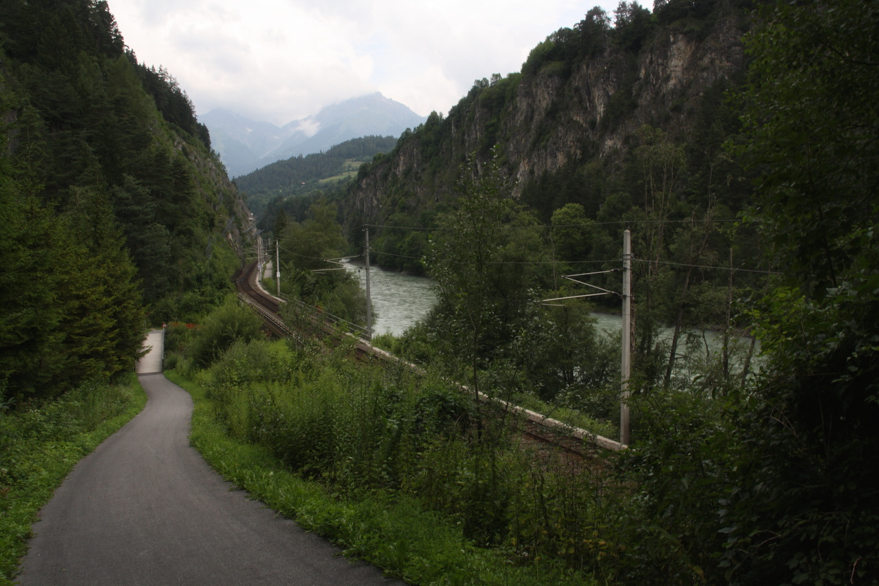Blick von der Brücke zwischen Imst und dem Bahnhof Imst-Pitztal nach Westen Richtung Imster Schlucht ![]() 300 dpi JPEG |
