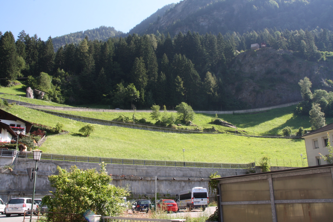 Etschtal, Blick über Lana auf die Nordrampe des Gampenpasses, der am 31.07.2008 gefahren worden war ![]() 300 dpi JPEG |
