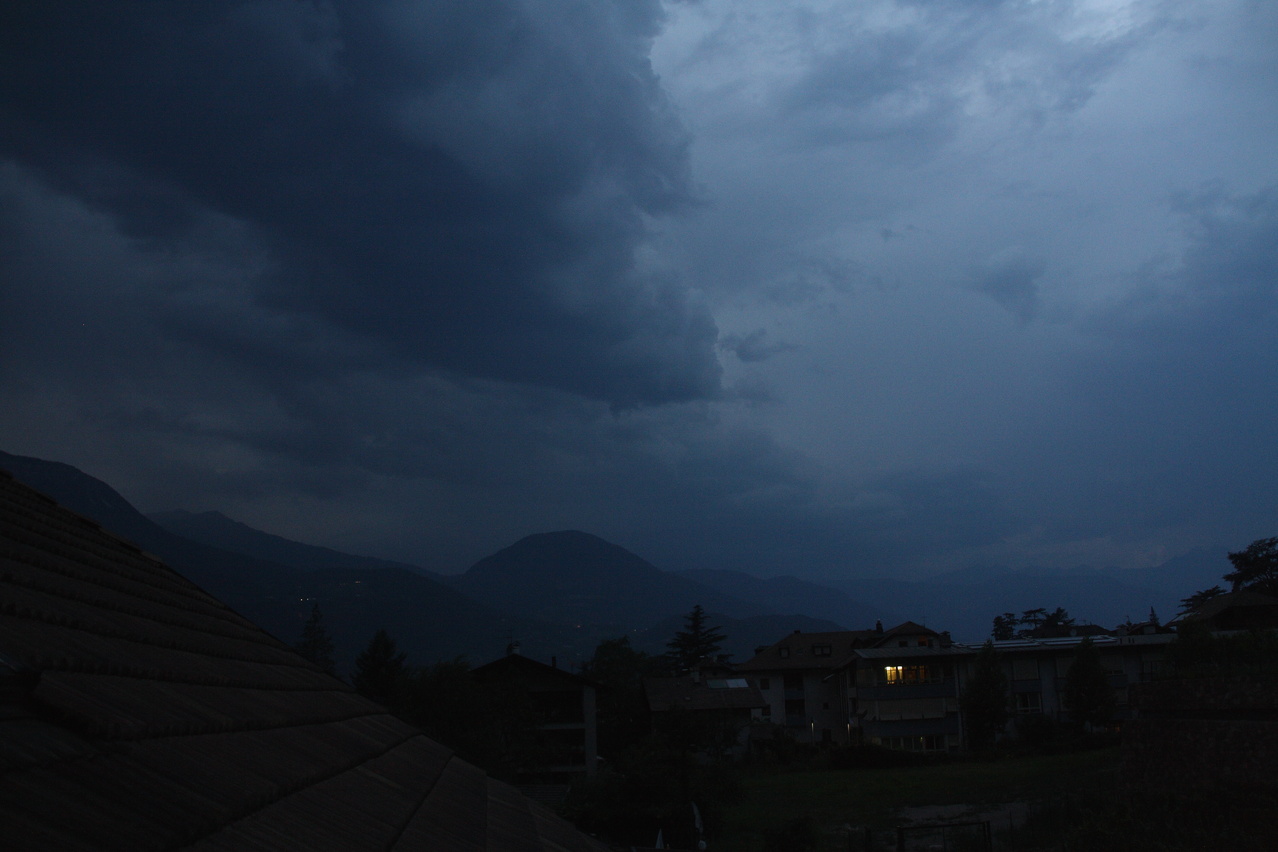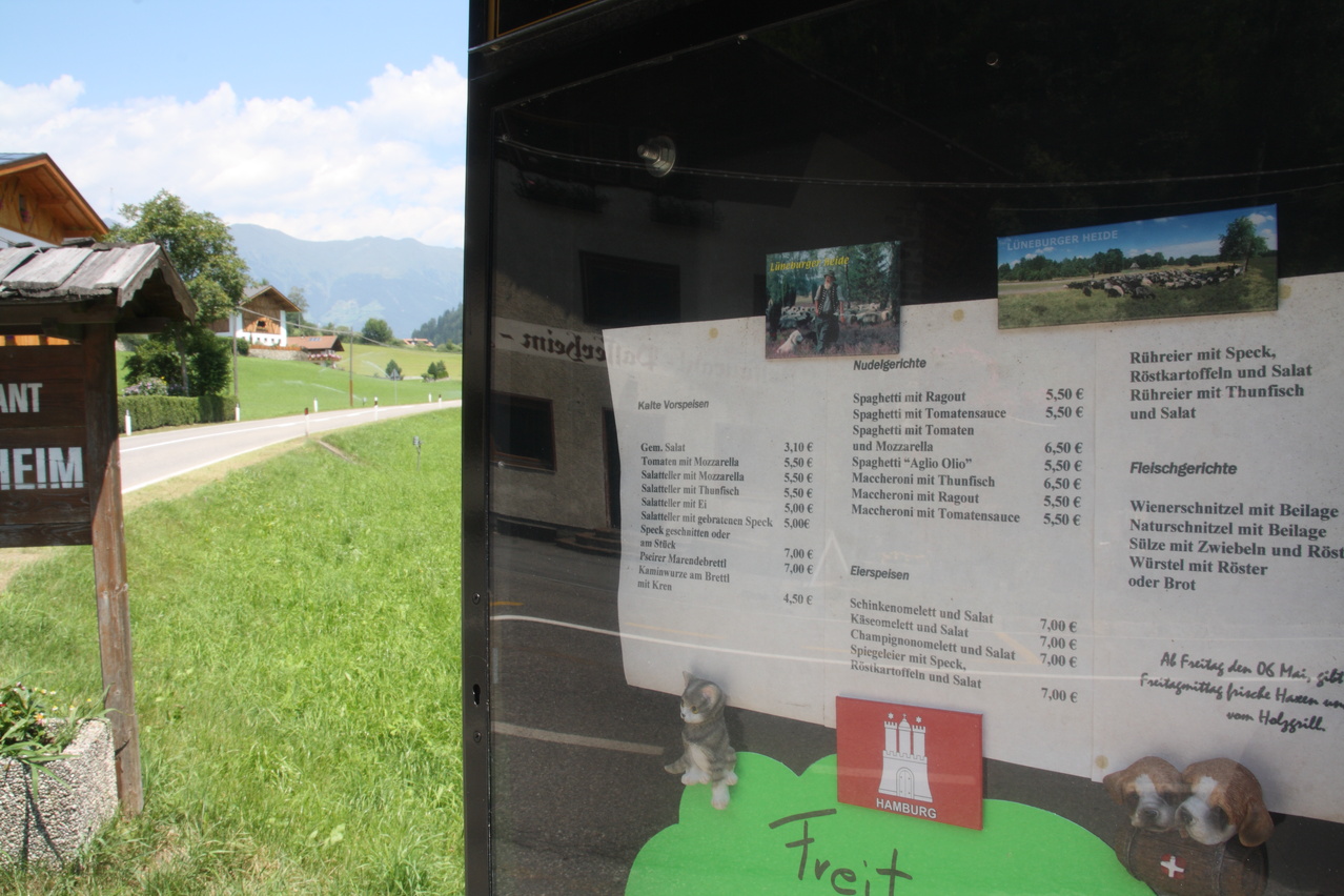 Beschreibung | Nach der Königsetappe am Vortag folgte die einzige Flachetappe der Tour, wobei Flachetappe hier lediglich dafür steht, dass keine Höhenmeter bergauf zu überwinden waren. Tatasächlich ging es von Moos in Passeier bis Meran ständig bergab. Von Moos in Passeier bis St. Leonhard in Passeier, dem untersten Abschnitt der Südrampe des Timmelsjochs, hatten die Bremsen streckenweise noch gut zu tun. Nach einem kurzen Werkstattbesuch in St. Martin in Passeier, um die am Vortag gerissen Speiche ersetzen zu lassen, wurde auf den Radweg gewechselt. Obwohl es sich dabei um eine Schotterpiste handelt, ließ der sich gut fahren bzw. die meiste Zeit einfach bergab rollen. Gar nicht erschloss sich allerdings, wieso ein Gastwirt im Passeiertal in seinem Schaukasten mit der Speisekarte Horrorbilder aus einem Gebiet in der norddeutschen Einöde, in diesem Fall der "Lüneburger Heide", und dazu noch ein Wappen von Hamburg zeigte. Die Ortsdurchfahrt für Radfahrer durch Meran wirkte zwar etwas unübersichtlich, war Dank durchgängiger Beschilderung aber letztlich kein Problem. Daran kann sich so manch andere Großstadt ein Beispiel nehmen! Im Etschtal angekommen war es einfach nur noch heiß und keine Wolke schob sich vor die Sonne. Von Meran bis auf Höhe Lana folgte die nächste Streckenwiederholung. Dieser Abschnitt wurde schon mal am 31.07.2008 gefahren, damals allerdings auf der Straße. In Terlan zeigte ein Thermometer kuschelige +35 °C an, im etwas schwierig zu findenden Quartier war es mit +28 °C auch nicht viel angenehmer. Am späten Abend zog noch ein heftiges Gewitter durch, aber selbst das brachte trotz größerer Regenmengen keine nennenswerte Abkühlung. |