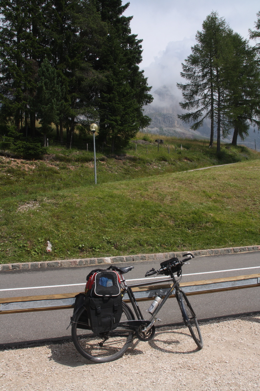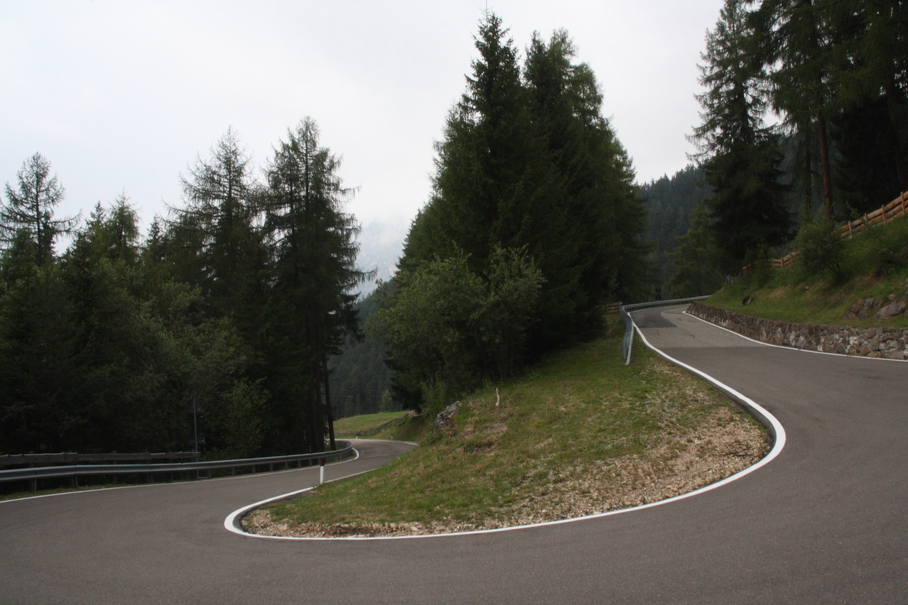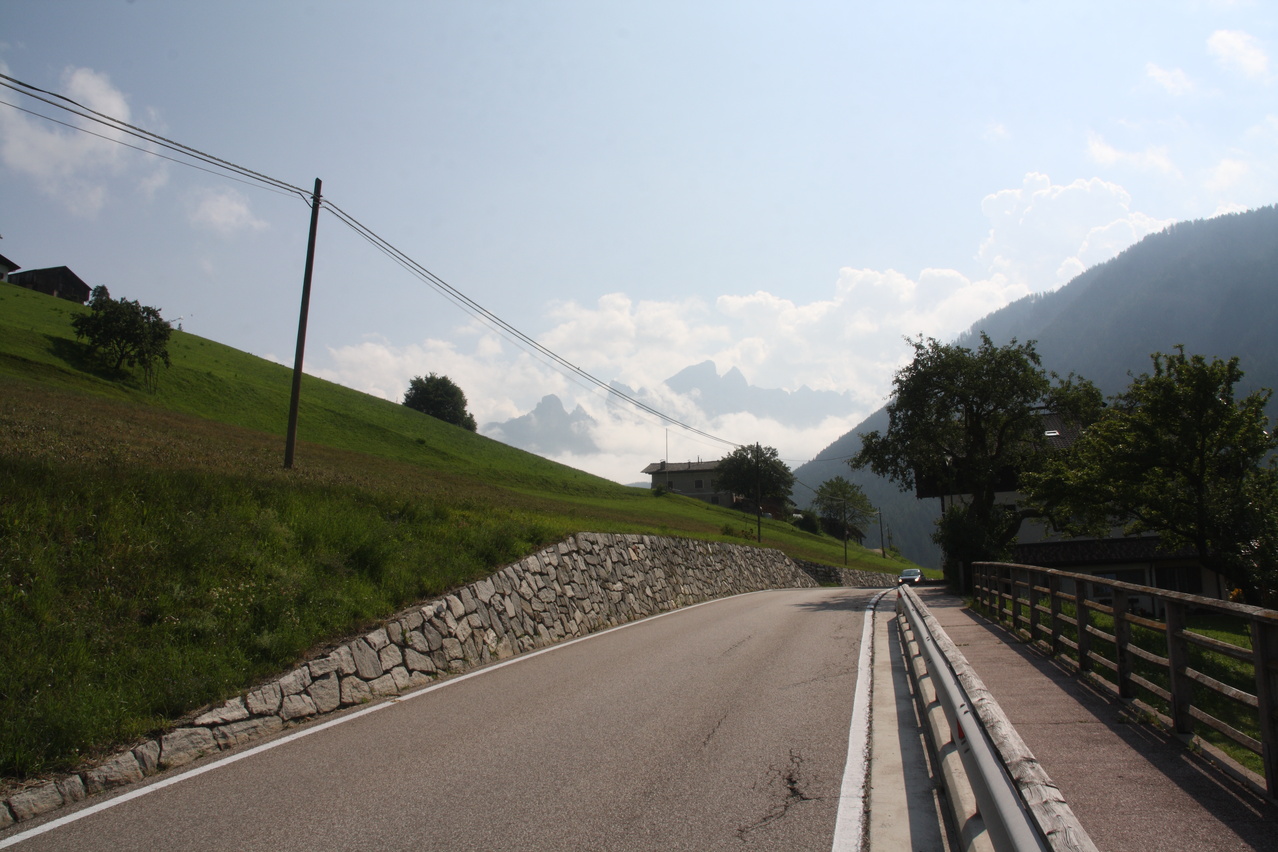 Beschreibung | Da weit und breit keine Werkstatt in der Nähe war, musste das Risiko eines Ausfalls des Freilaufs und damit das Ende der Weiterfahrt in Kauf genommen werden. In diesem Fall wären die Alternativen eine Busfahrt, sofern der Bus Fahrräder mitgenommen hätte, oder das Hinunterrollen zurück nach Bozen gewesen. Vor diesem Hintergrund wurde auch auf den Versuch verzichtet, mit dem beladenen Fahrrad die bis zu 20 % steile Rampe in St. Cyprian komplett hochzudrücken. Das Hochschieben nach dem ersten Anhalten in der Rampe aus der Fahrt heraus war allerdings nicht weniger anstrengend, dafür aber demotivierend. Im weiteren Verlauf Richtung Nigerpass wurde auch noch eine bis zu 14 % steile Rampe teilweise schiebend überwunden. Dafür blieb es an dem Tag bei drei behebbaren Aussetzern des Freilaufs, und die Tour konnte wie geplant fortgesetzt werden. Der Nigerpass ist etwas seltsam, denn das Schild an der Straße steht nicht auf einer Passhöhe. Die Straße steigt Richtung Karerpass wenn auch nur leicht noch um weitere 84 Höhenmeter an. Kurz vor dem Karerpass fällt die Straße in eine Senke ab, wo sie dann in die Straße zum Karerpass einmündet. Diese Straße steigt dann recht stramm zum Karerpass an, dafür sind es wenigstens nicht mehr so viele Höhenmeter bis zur Passhöhe. Mit der Überquerung des Karerpasses von West nach Ost erfolgte auch der Wechsel von der Provinz Südtirol in die Provinz Trentino. Ab jetzt drohte also wieder die Sprachbarriere zu einem Problem zu werden. Von der Ostrampe des Karerpasses fiel der Blick auf Berge, die bei der Alpentour 2010 schon aus anderen Perspektiven zu sehen gewesen waren, so die Marmolada, den höchsten Berg der Dolomiten, und die Gruppo del Sella, die am 28.07.2010 auf der Westseite halb umrundet worden war. Im Val di Fassa wurde die extrem stark befahrene Straße bei erstbester Gelegenheit verlassen und auf den asphaltierten Radweg, die "Pista ciclabile Dolomiti di Fiemme e Fassa" gewechselt, der bis Ziano di Fiemme nicht mehr verlassen wurde. |