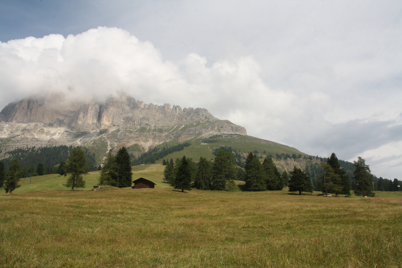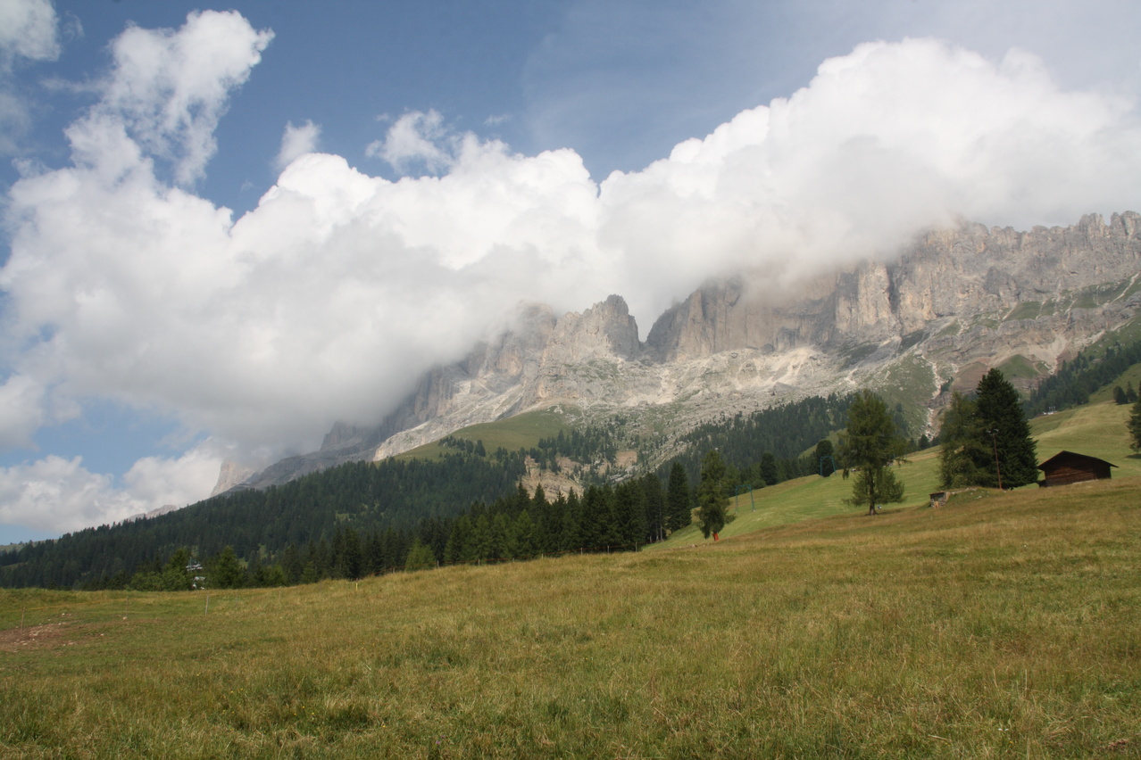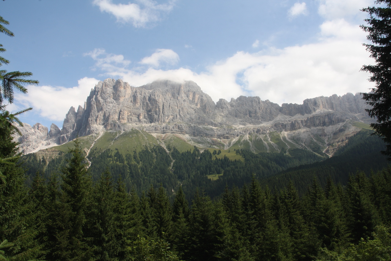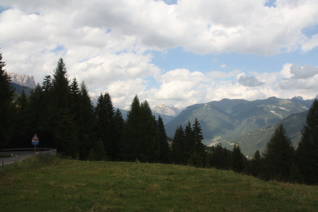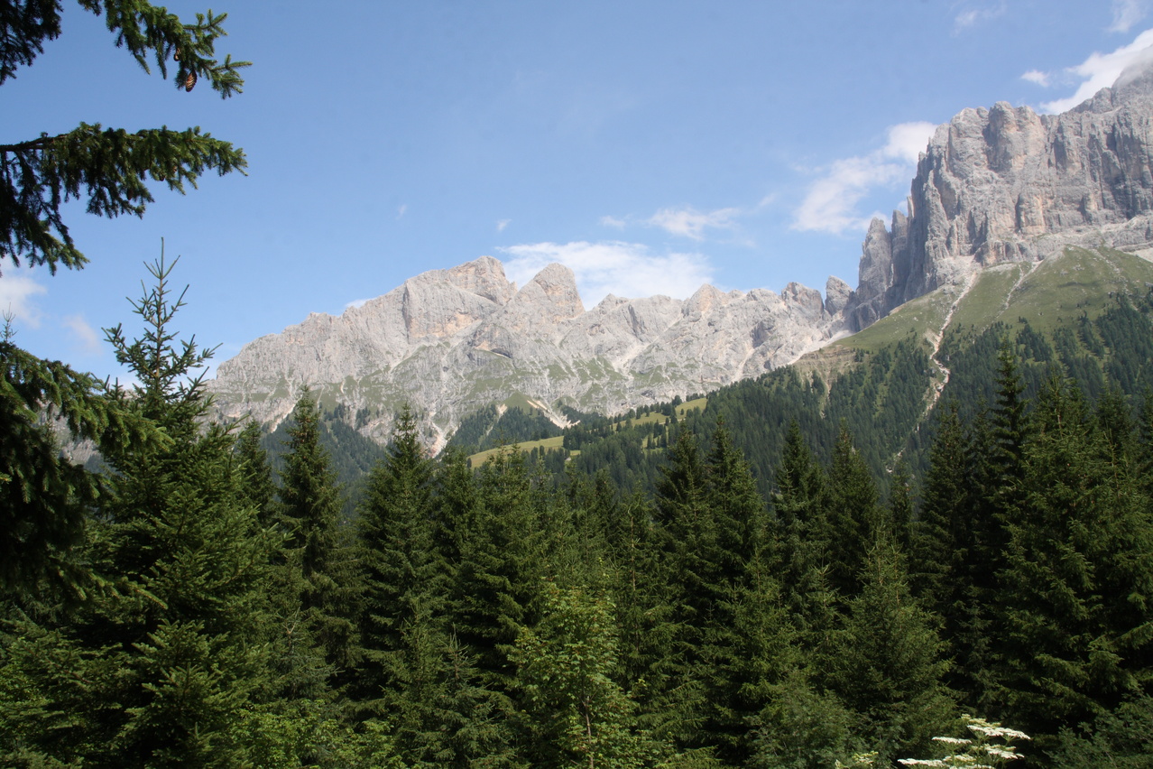 Karerpass, Ostrampe, Blick ins Val di Fassa, im Hintergrund die Gruppo del Sella ![]() 300 dpi JPEG |
