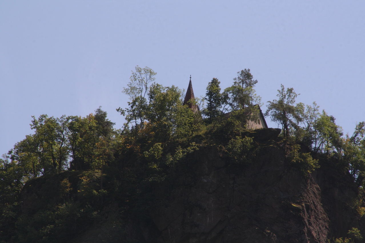 Sarner Schlucht, hoch über dem Ostufer die Burg Wangen-Bellermont ![]() 300 dpi JPEG |
