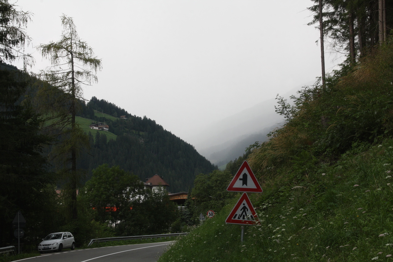 Beschreibung | Bevor es weiter gehen konnte, musste mit dem Freilauf etwas passieren. Um 09:30 MESZ in der Werkstatt hieß es nach kurzer Debatte, dass das Fahrrad um 12:00 MESZ fertig sein würde. Dem war dann auch so, der Freilaufkörper, laut Rechnung "corpore rota libero" (Italien lässt grüßen), wurde komplett getauscht. Die Zeit bis dahin musste nun irgendwie tot geschlagen werden. Da das "Ötzi-Museum" (Südtiroler Archäologiemuseum) nur etwa zehn Fußminuten von der Werkstatt entfernt lag, wurde dieses aufgesucht. Da es um 10:00 MESZ gerade öffnete, war der Andrang auch noch nicht so groß. Beim Verlassen des Museums gegen 11:30 MESZ hatte sich bereits eine lange Warteschlange draußen vor dem Eingang gebildet. Aus naheliegenden Gründen ist das Museum weitgehend als passives Museum ausgeführt. Positiv fällt auf, dass man nicht irgendwann beim Rundgang unvermittelt vor der Mumie (Ötzi) steht. Vom Hauptgang aus ist die Mumie nicht zu sehen, eine Wand mit der Aufschrift "Mumie" und seitlichen Durchlässen versperrt den Blick. Somit kann jeder Besucher selbst entscheiden, ob er oder sie die Mumie sehen möchte oder nicht. So gruselig oder gar eklig ist der Anblick der Mumie, die hinter Glas in einem recht dunklen, speziell klimatisierten Raum lagert, aber nicht. Gekotzt hat jedenfalls niemand und der Notfall-Kardiologe wurde auch nicht benötigt. Mit entsprechender Verspätung ging es nach dem außerplanmäßigen "Ausflug" in die Kupferzeit nun wieder stramm bergauf im Sarntal. Das Sarntal ist im unteren Bereich über größere Strecken eine tief eingeschnittene Schlucht mit teilweise fast senkrecht abfallenden Talflanken. Daher heißt das Sarntal in diesem Bereich "Sarner Schlucht". Die Straße wurde in diesem Bereich in den Fels der westlichen Talflanke hineingeschlagen. Im unteren Bereich dieses Tals stand an dem Tag die Hitze. Auch die ersten Tunnel, durch die die Straße führt, brachten keine Abkühlung. Dort stand ebenfalls die heiße Luft drin. Erst ab dem zehnten Tunnel verschafften die Tunneldurchfahrten etwas Abkühlung. Erleichternd kam hinzu, dass die Steigung weiter oben nachlässt und sogar einige fast flache Passagen auf dem Weg nach Halbweg liegen. Ab dort zieht die Steigung aber bis Sarnthein wieder merklich an. Bei Astfeld erfolgte der Talfer folgend der Wechsel ins Pensertal. Das letzte Stück bis Muls verläuft dann wieder deutlich flacher. Dies konnte aber erst in Angriff genommen werden, nachdem der Durchzug eines Gewitters mit Starkregen in Sarnthein abgewartet worden war. Somit erfolgte trotz der kurzen Streckenlänge der Etappe die Ankunft im Quartier erst um 19:00 MESZ. Dies war dann auch die dritte und letzte Bergankunft dieser Tour. |