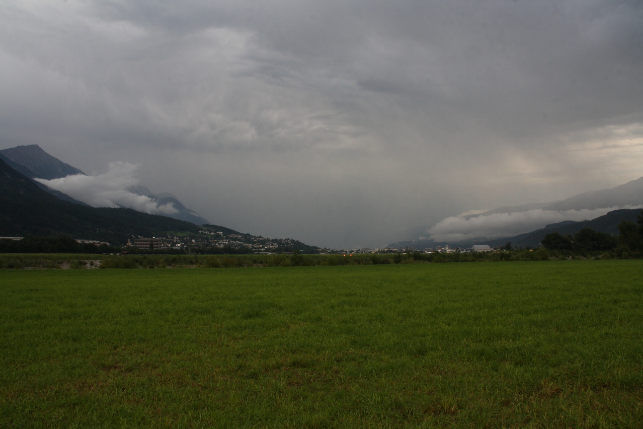 Blick auf den nach Osten abziehenden Regen über die nutzloseste Einrichtung von Innsbruck, den Flughafen ![]() 300 dpi JPEG |