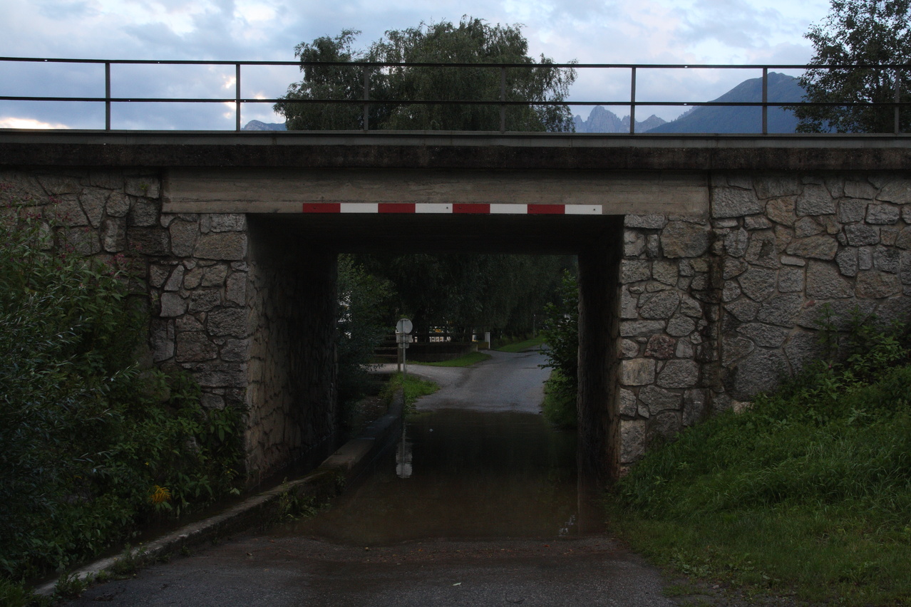 geflutete Unterführung zwischen Inntalradweg und Unterperfuss, die Inntalbahn fährt trocken, der Radfahrer nass ![]() 300 dpi JPEG |