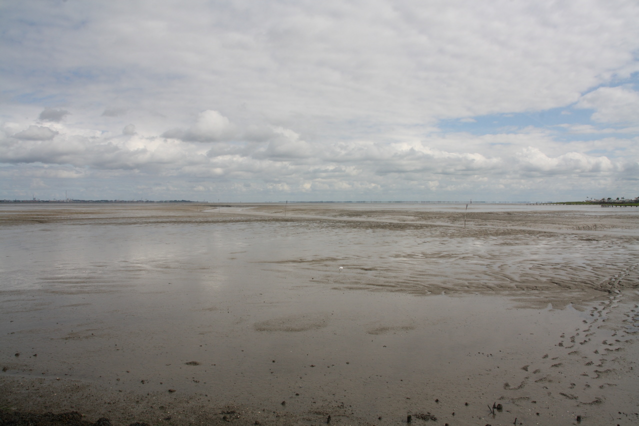 das Dangaster Außentief, ein Priel im Watt mit Fahrwasserkennzeichnung durch Pricken ![]() 300 dpi JPEG |