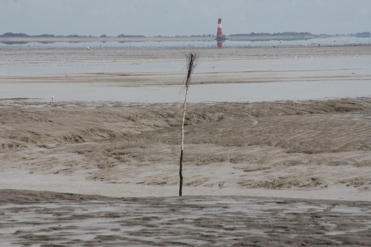 Zoom auf eine Pricke, im Hintergrund der Leuchtturm Arngast ![]() 300 dpi JPEG |