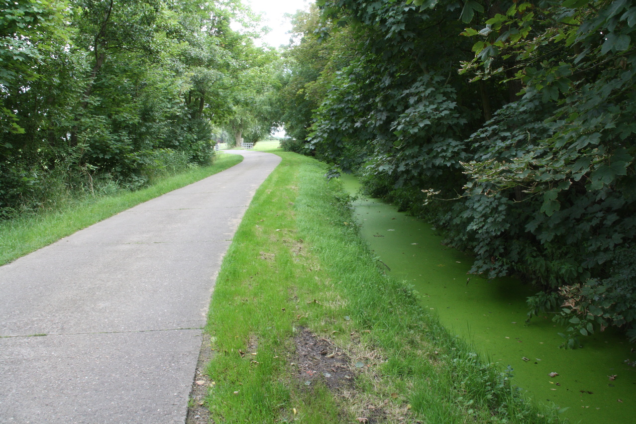 Nein, das Grüne da ist KEIN Weg, sondern ein Graben mit 100 % Bedeckung durch die Kleine Wasserlinse (Lemna minor) ![]() 300 dpi JPEG |