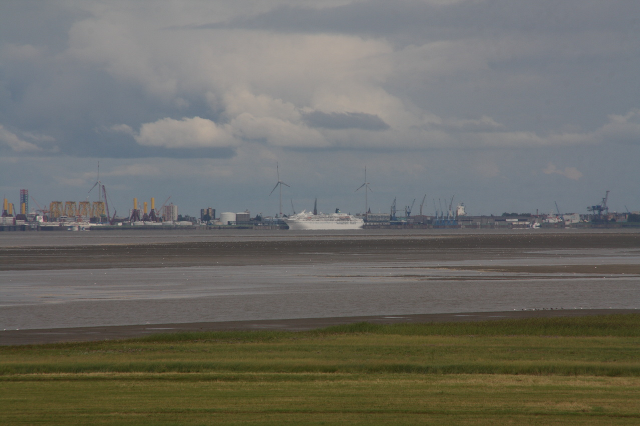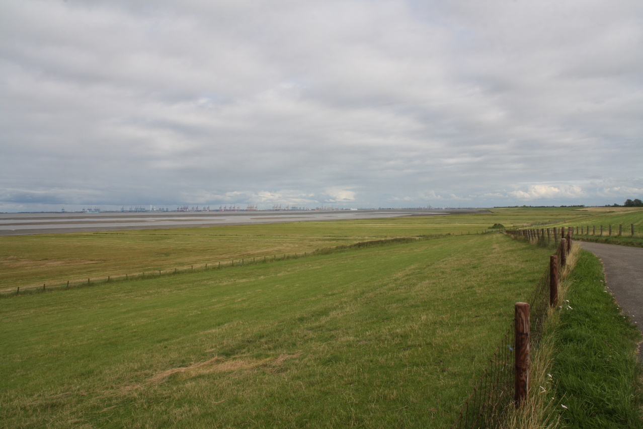 Deich bei Burhaversiel, Blick auf Wesermündung und Bremerhaven ![]() 300 dpi JPEG |
