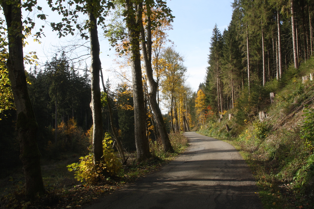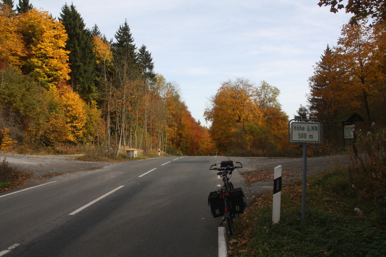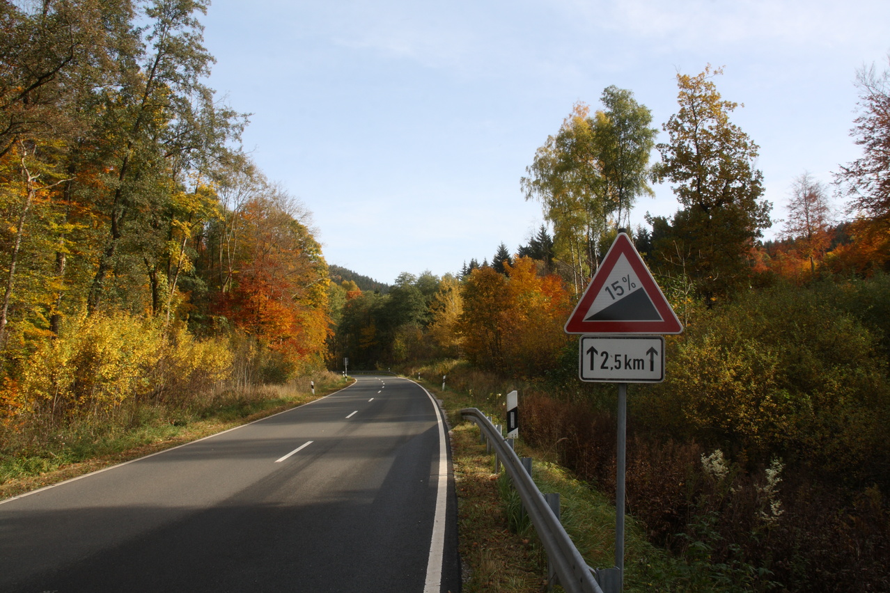 Beschreibung | Bei sehr herbstlicher Stimmung wurde die letzte Harztour in diesem Jahr gestartet. Da es vor zwei Tagen in Torfhaus schon reichlich kalt war, wurde eine Route gewählt, die zwar einige Höhenmeter bot, aber nicht zu weit rauf führte. Das bedeutete natürlich, dass sich die Höhenmeter im Wesentlichen auf zwei Anstiege, von Seesen zum Sternplatz und von Wildemann nach Hahnenklee-Bockswiese, verteilten. Der "Schleichweg" von Wildemann nach Hahnenklee-Bockswiese vermittelt streckenweise sogar den Eindruck einer Bergstraße. Die schmale Straße verläuft streckenweise parallel zum Hang, der mit Fichtenwald bestandene Hang fällt direkt am Straßenrand steil ab und Straßenbegrenzungen wie etwa Leitplanken gibt es auch nicht. Am Auerhahn angekommen war es schon zu spät für die Option "Schalke". Außerdem wäre es da oben wohl auch schon zu kalt gewesen. So endete diese Tour mit einer langen Abfahrt von nur 636 m ü.NHN runter nach Goslar. |