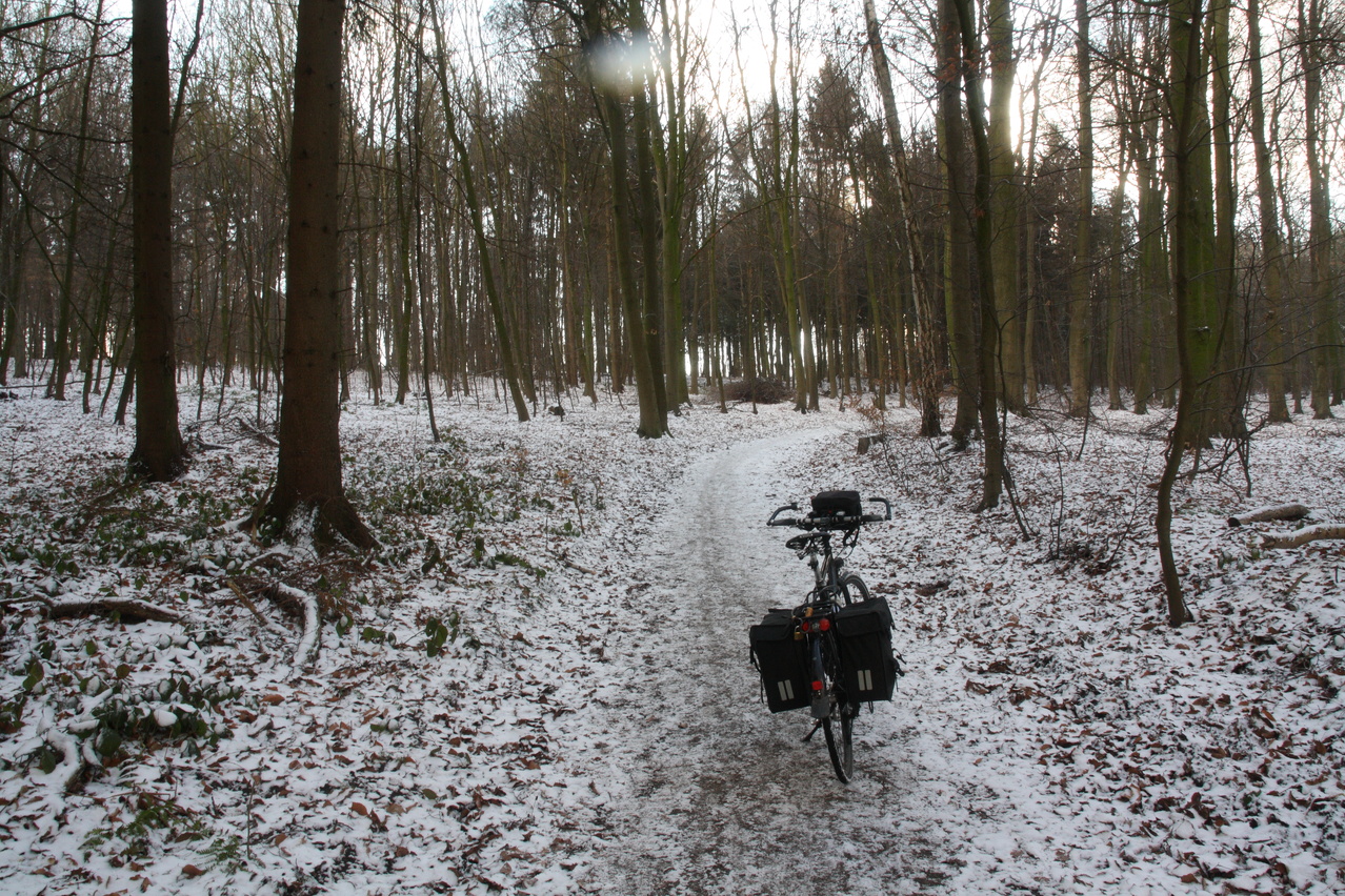 Beschreibung | Es ist — Igitt! — Winter ☹ Da dieser Tag aber nach einheitlich trübem Himmelgrau der erste Tag in diesem Jahr war, an dem sonniges Wetter herrschte, wurden bei Temperaturen um 0 °C die dicken Klamotten angezogen und eine kleine Runde gedreht, wobei der Benther Berg wenigstens ein paar Höhenmeter brachte. Anders als bei der letzten Tour im Vorjahr hielt diesmal das sonnige Wetter bis zum Ende der Tour. Da es für Hannover und umzu völlig unüblich so gut wie windstill war, konnte die Wärmestrahlung der Sonne ihre Wirkung voll entfalten. Auf den Straßen und Wegen bot sich das gleiche Bild wie in den vergangenen Wintern. Über Land waren Straßen und Radwege frei, im Stadtgebiet von Hannover fanden sich auf Radwegen und allen Straßen mit Ausnahme der Hauptverkehrsstraßen Schnee und Eis. |