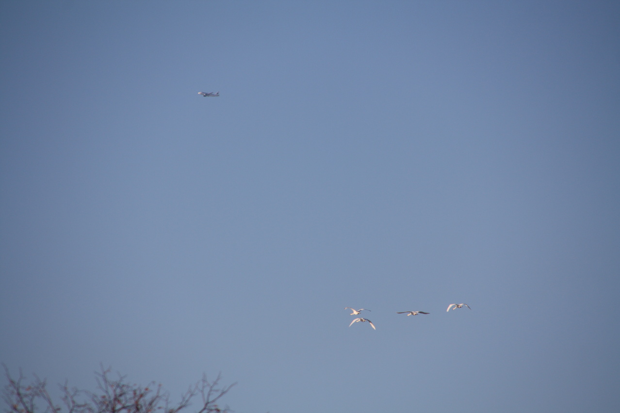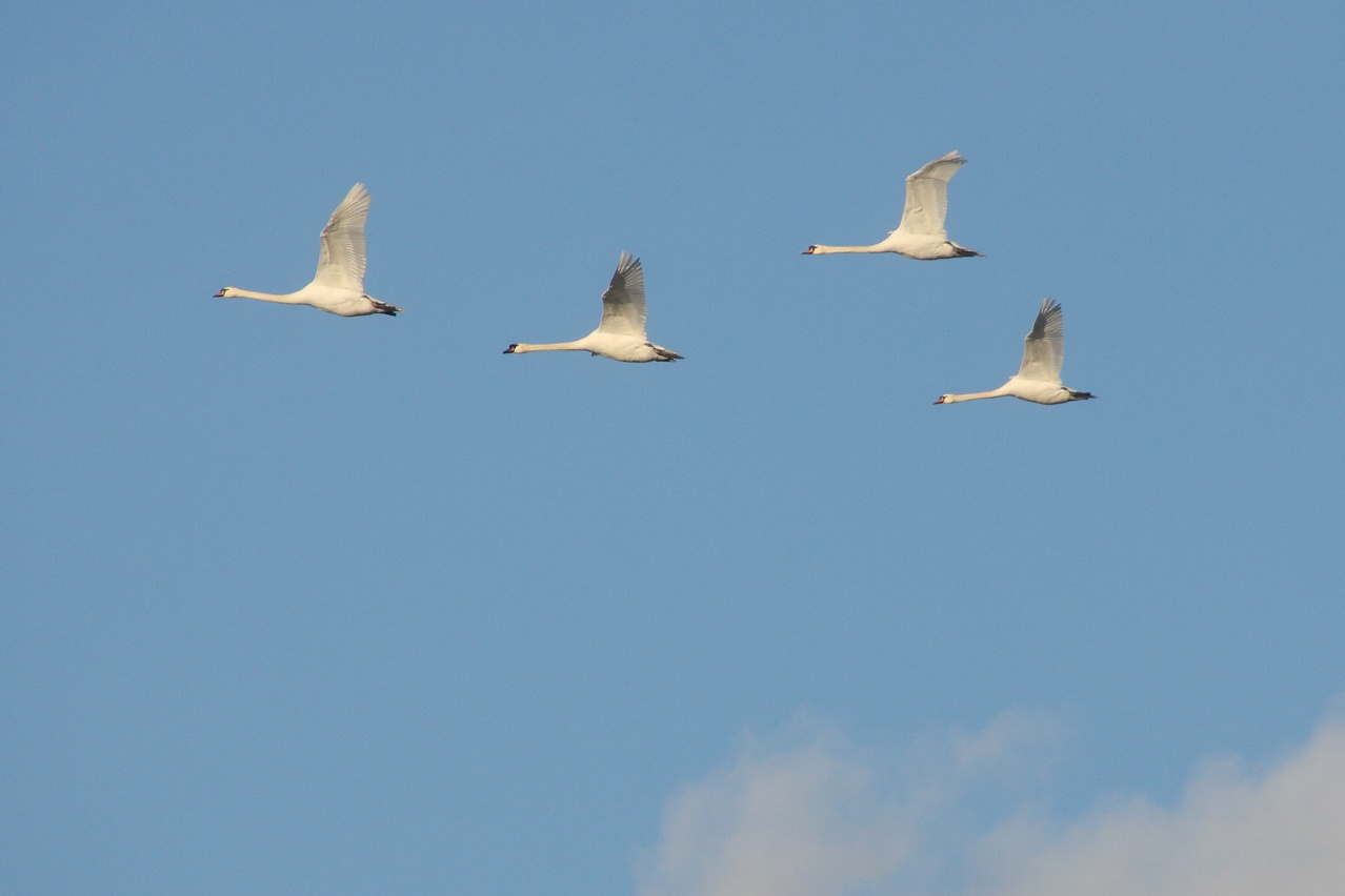 immer noch die vier Höckerschwäne — und ein "Vogel", der am Himmel nichts zu suchen hat! ![]() 300 dpi JPEG |